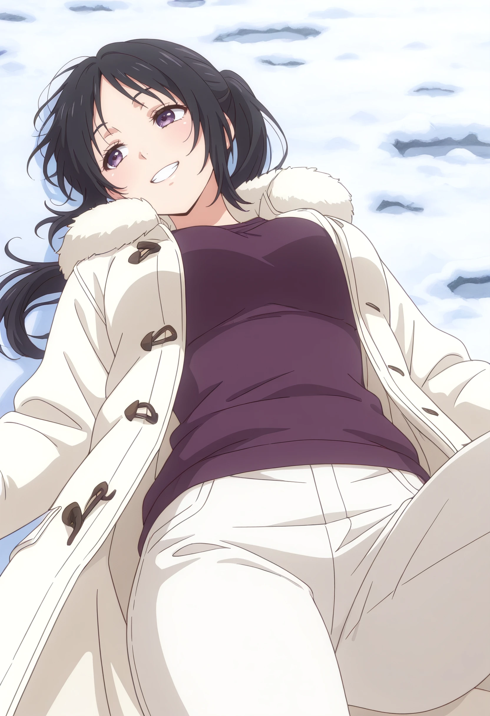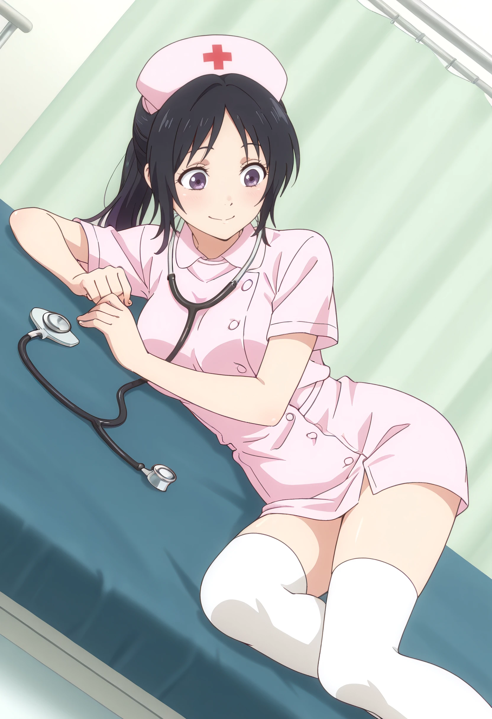 KMNAkari, black hair, purple eyes, long hair, ponytail,