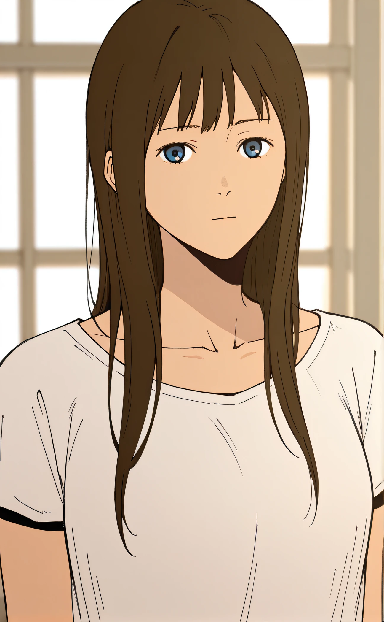 loose hair, short sleeves, white shirt, collarbone