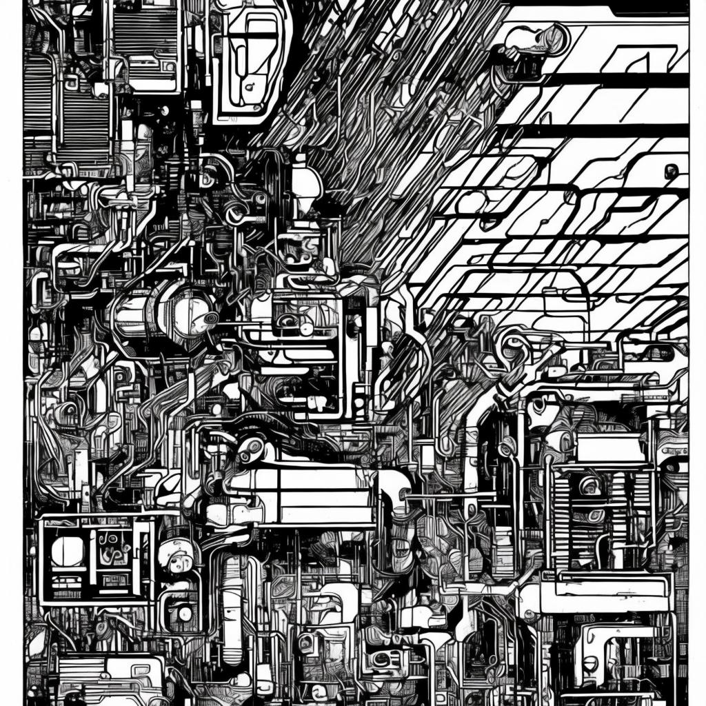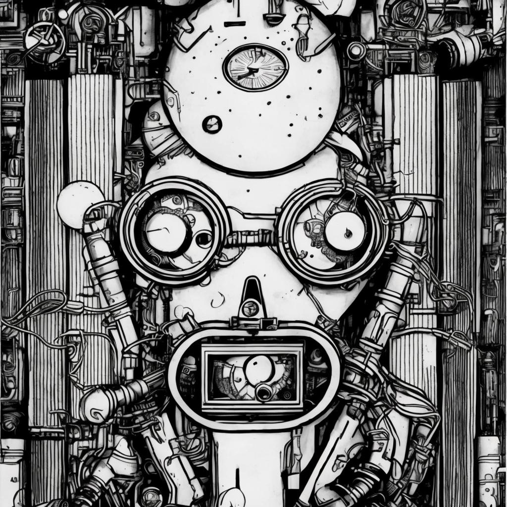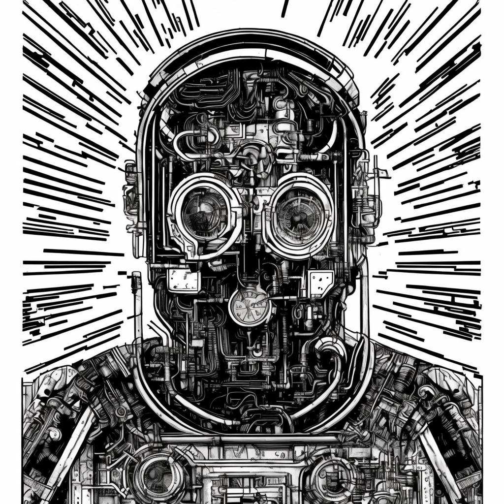 Curated Collection of Line Art : Every page from "Robot Heads" and "Future Cities" (published books i created as colouring in books)
