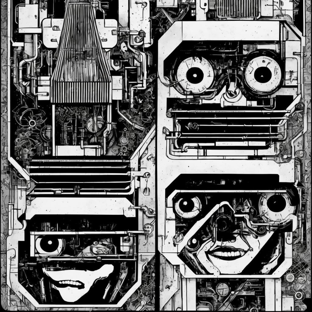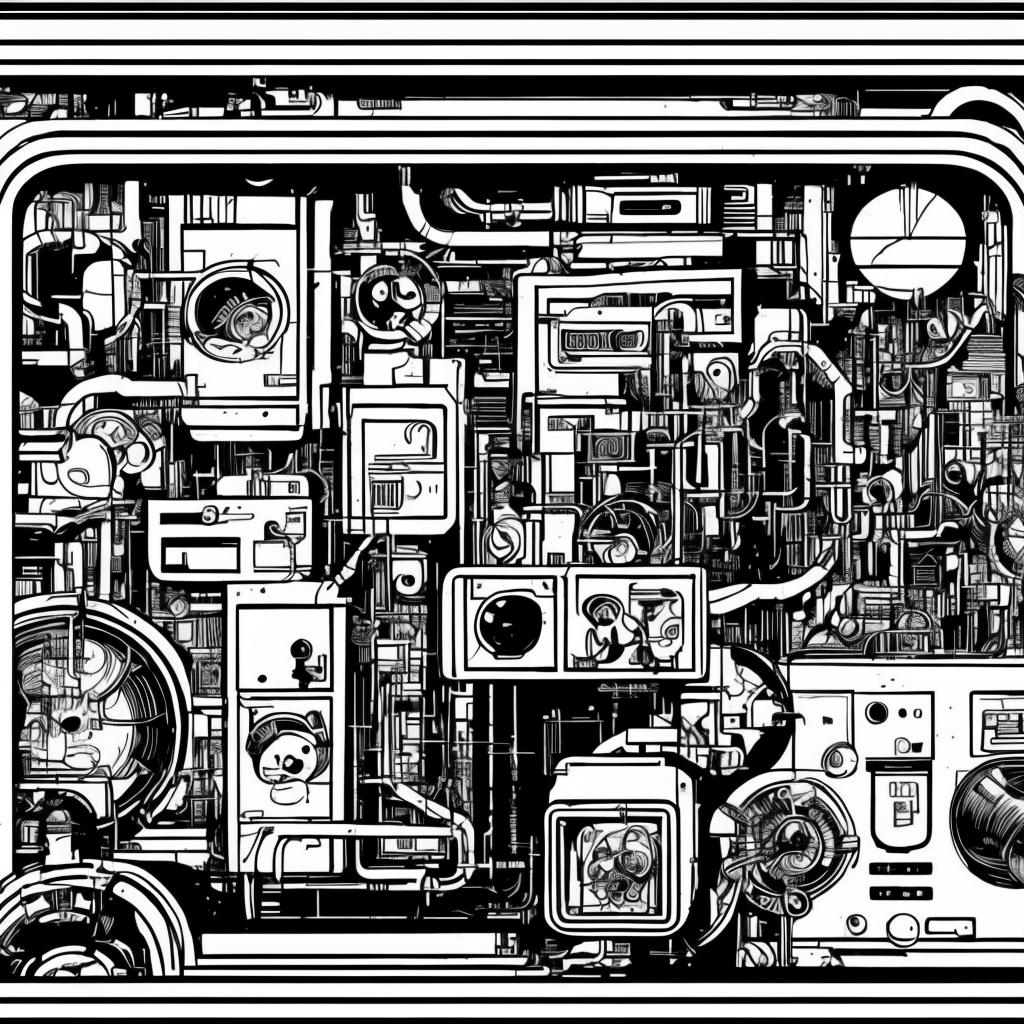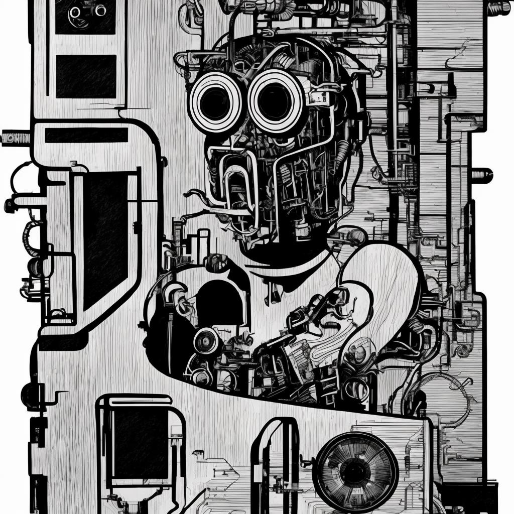 Curated Collection of Line Art : Every page from "Robot Heads" and "Future Cities" (published books i created as colouring in books)