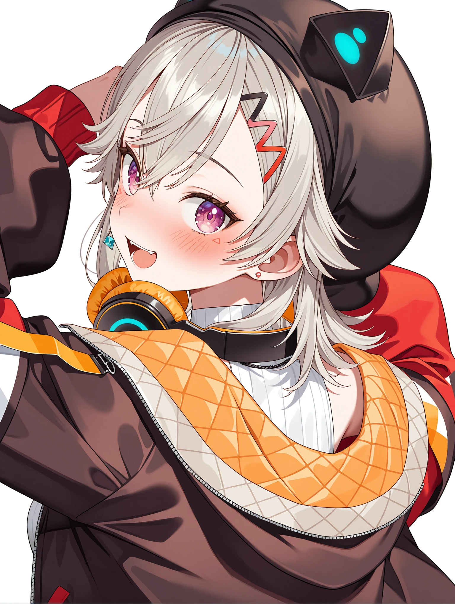 ヘッドンホホ ・m_h_d,cat ear headphones,headphones around neck,