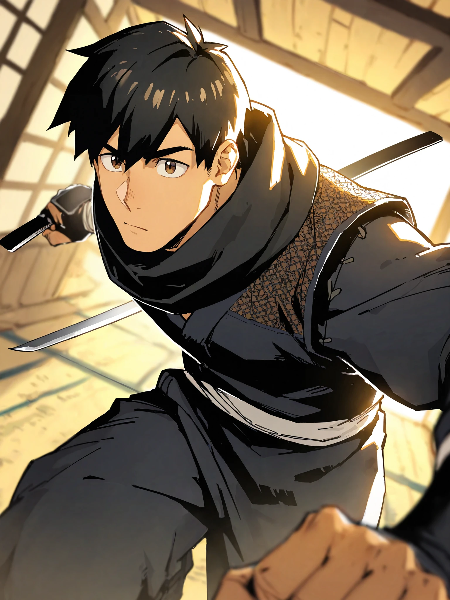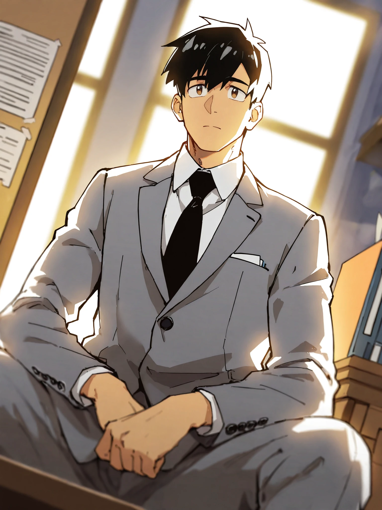 Mukouda Tsuyoshi,black short hair,brown eyes,1boy,male focus,solo,