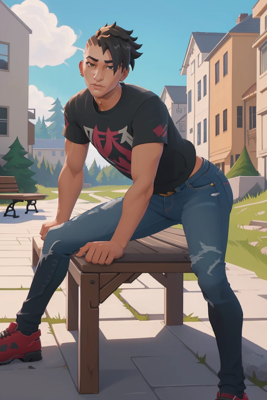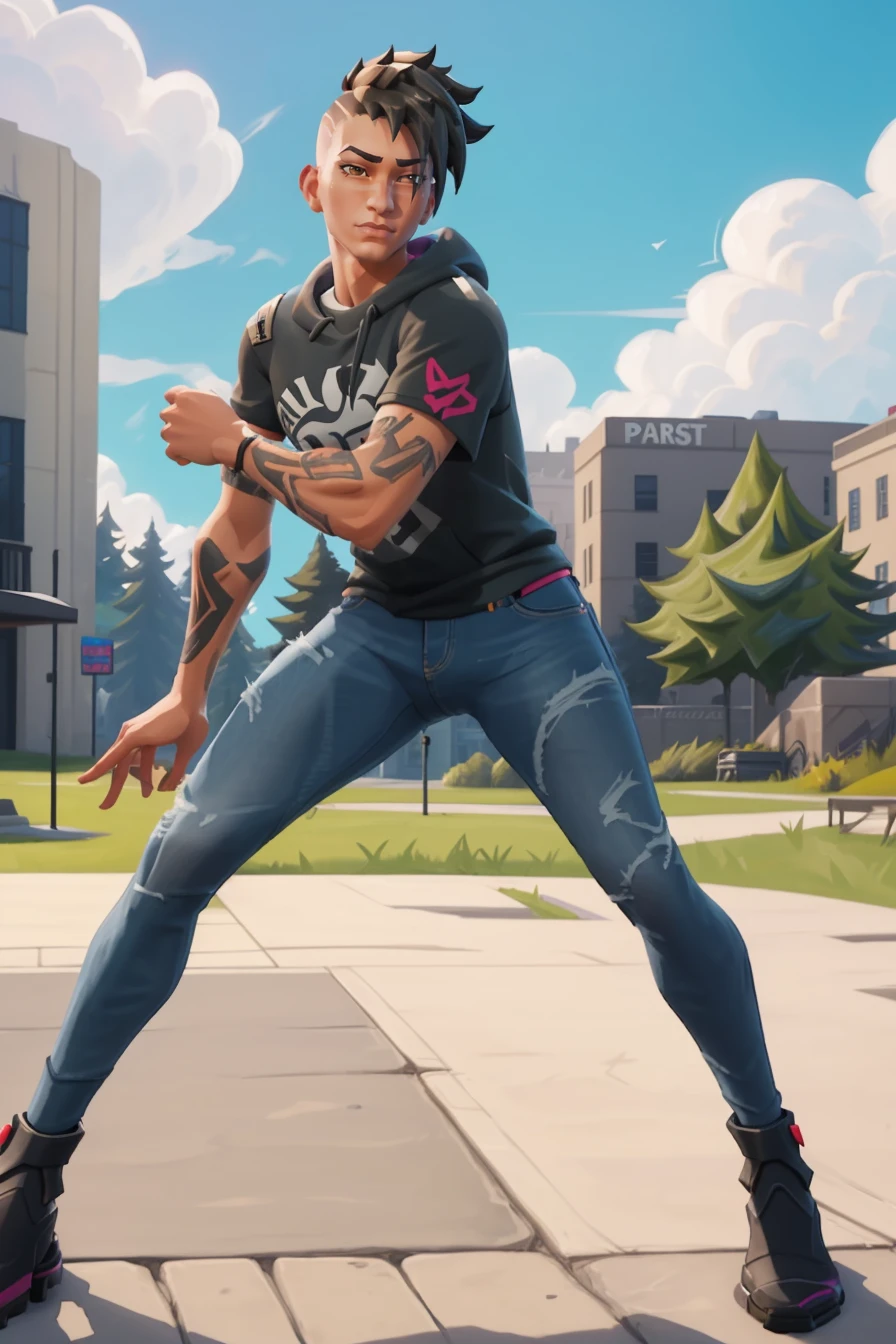 stray \(fortnite\), black hair, short hair, undercut, mohawk