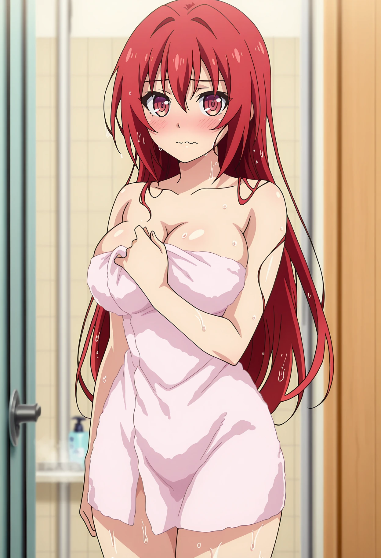 hair down, hair between eyes, long hair, red hair, multicolored eyes