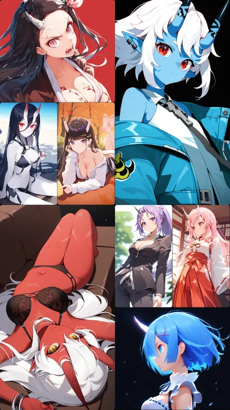 oni horns, oni girl, skin-covered horns, japanese clothesRecommended prompt structure: