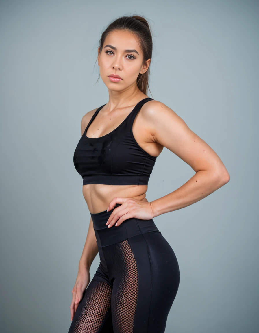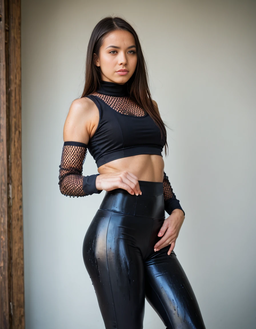 leggings,sports bra,black pants,cosplay photo,crop top,fishnet legwear,fishnets,high-waist pants,sweater,tight pants,wet clothes,yoga pants,