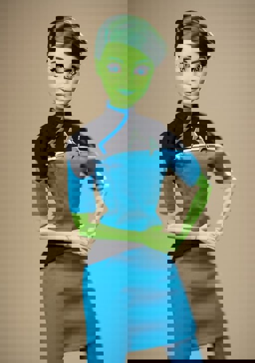 Make sure to include "green skin" somewhere in your prompt or you'll get a white girl. Sometimes it likes to add glasses to her for some reason, just add "glasses" to the negative prompt and they go away.