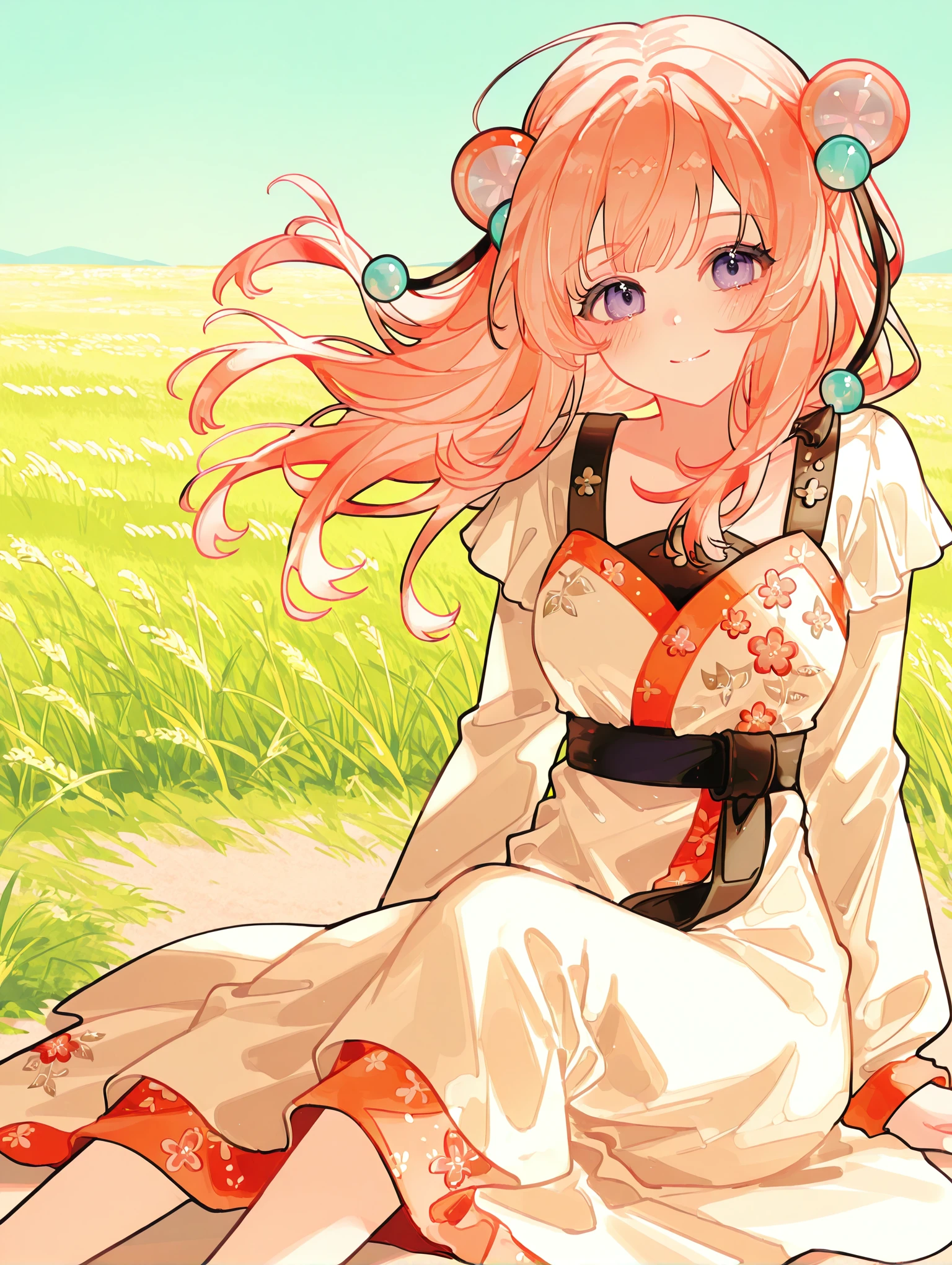 Sh1z4ka, 1girl, long hair, orange pink hair, hair bobbles