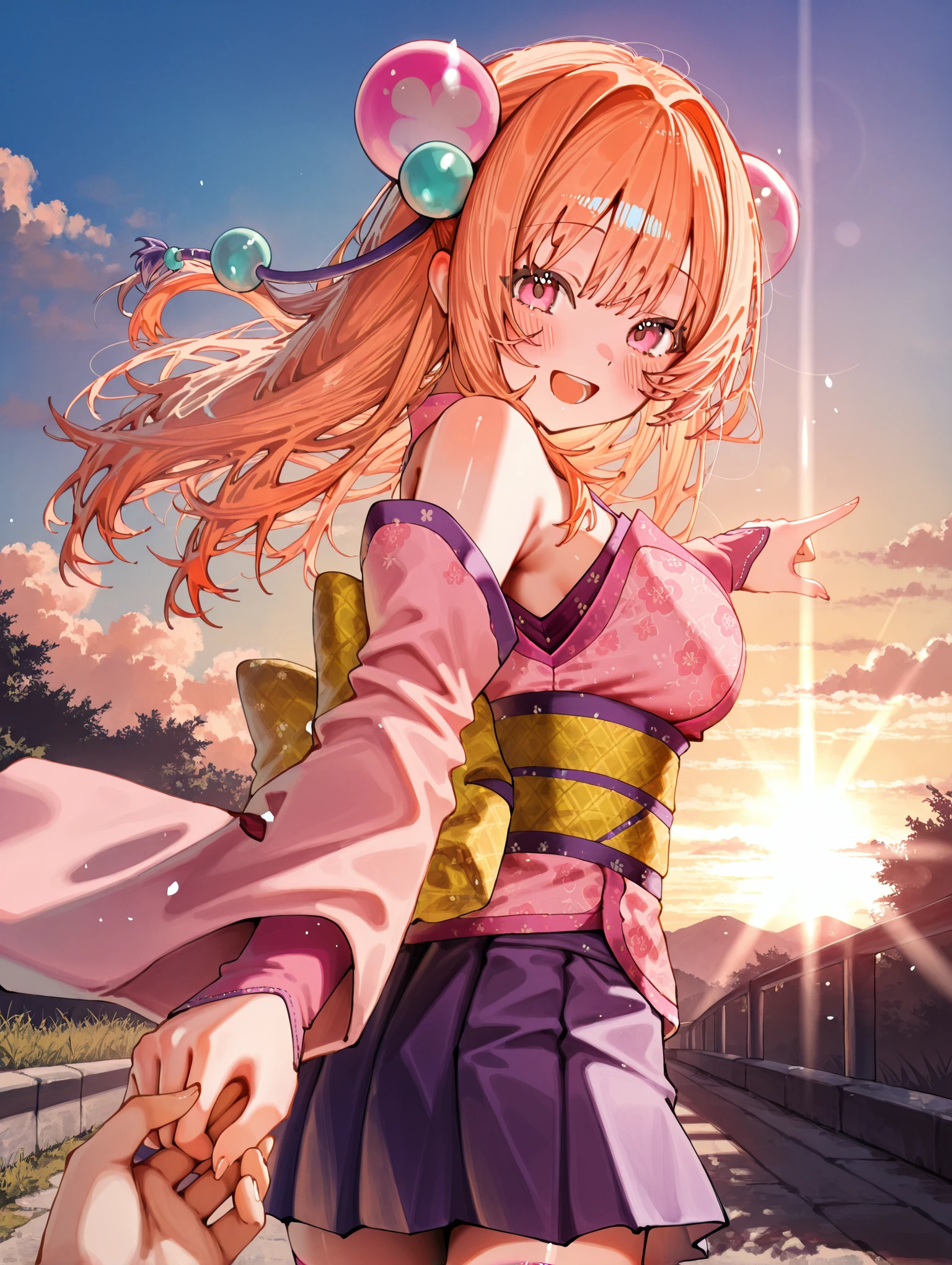 Sh1z4ka, 1girl, long hair, orange pink hair, hair bobblesHer hair is ambiguously pink/orange in the game, it's more pink in the anime.