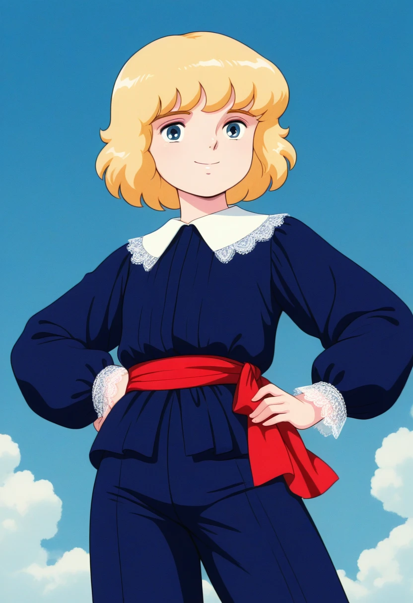 • navy velvet clothing,navy velvet pants, lace collar, lace cuff,red sash