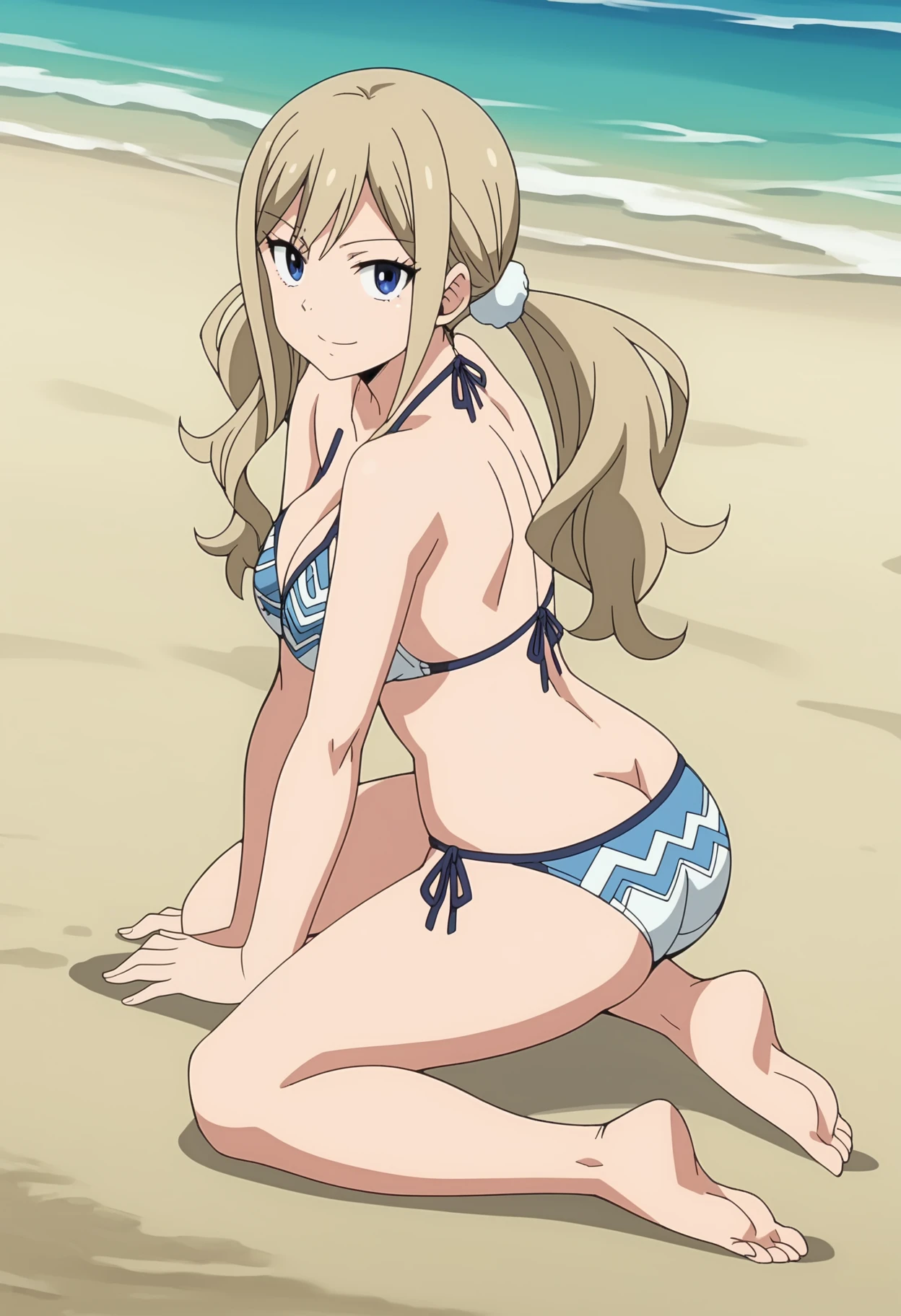 Rebecca swimsuit outfit | Rebecca Bluegarden, blue eyes, long hair, twintails, blonde hair, large breasts, swimsuit, bikini, barefoot, side-tie bikini bottom, cleavage | earrings, jewelry, cat ears | underwater, swimming