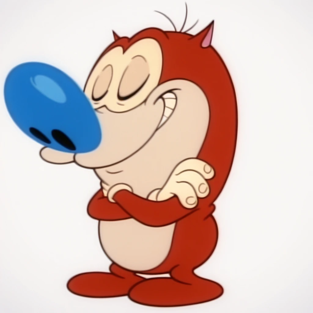 1boy, male, furry, anthro, cat, solo, strands of hair, red fur, two-tone fur, black eyes, blue nose, 4 fingers, small ears