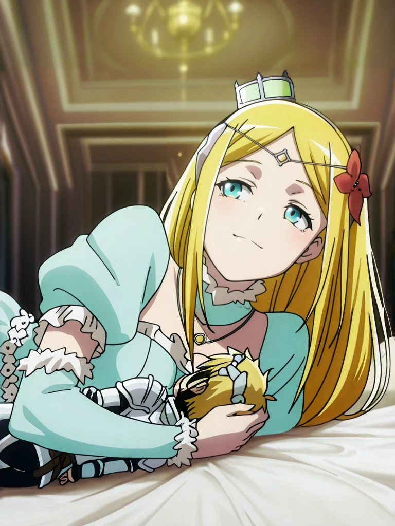 rennerTheiere,blonde hair, long hair,bangs, aqua eyes,small breasts, anime screenshot,
