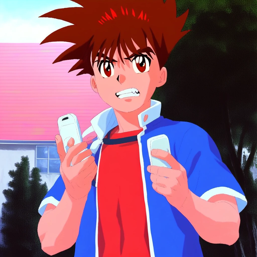 Koji, solo, brown hair, 1boy, male focus, brown eyes, short hair, spiked hair,
