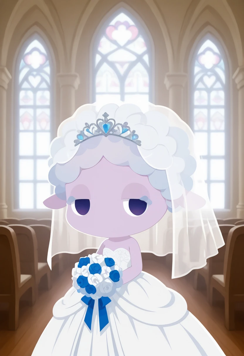 shabobon, bubble clothes, blue eyes, no mouth, purple skin, no mouth