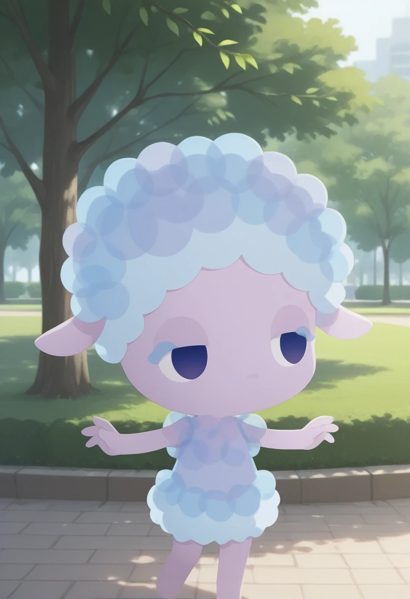 prompt: shabobon, bubble clothes, blue eyes, no mouth, purple skin, no mouth