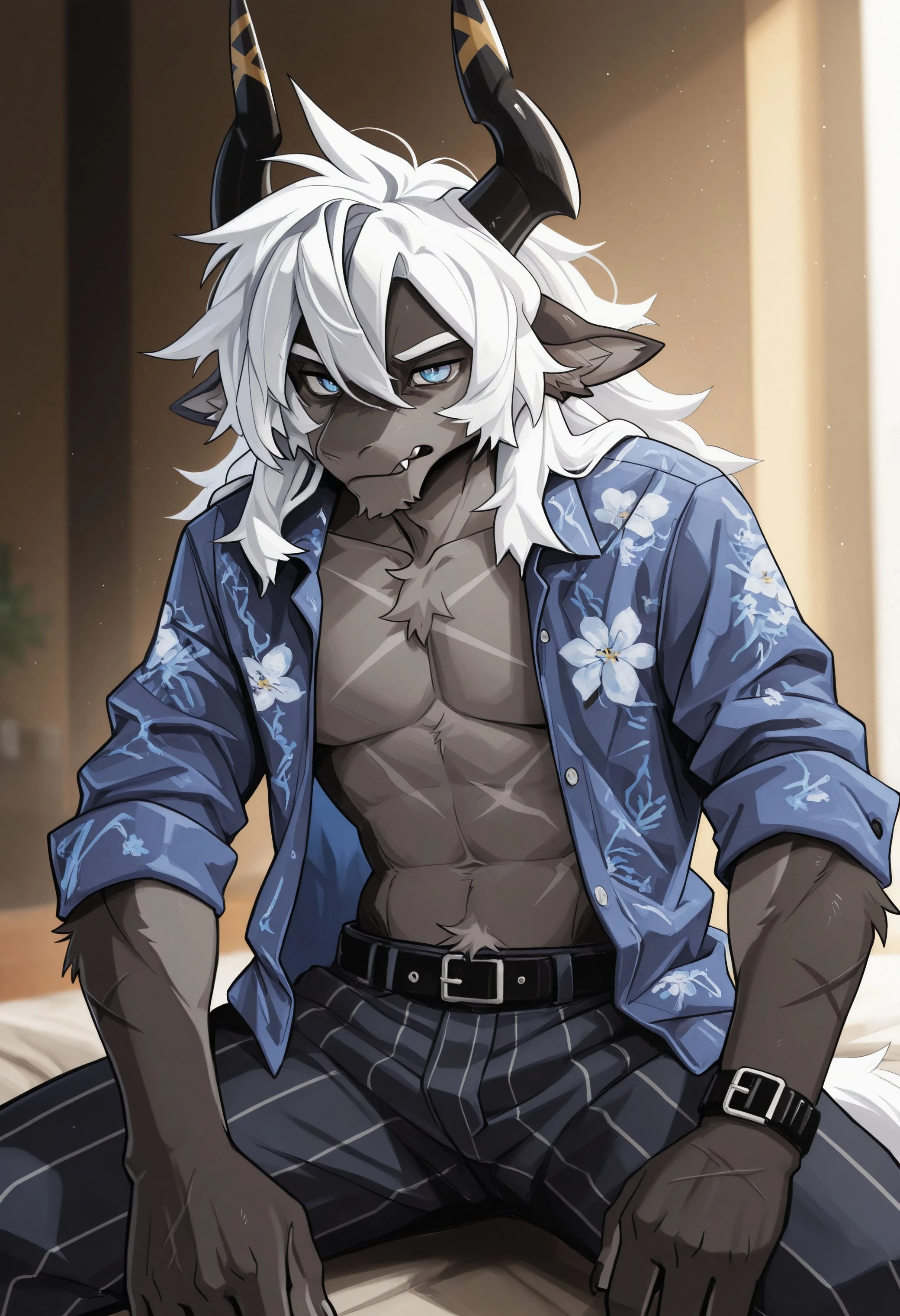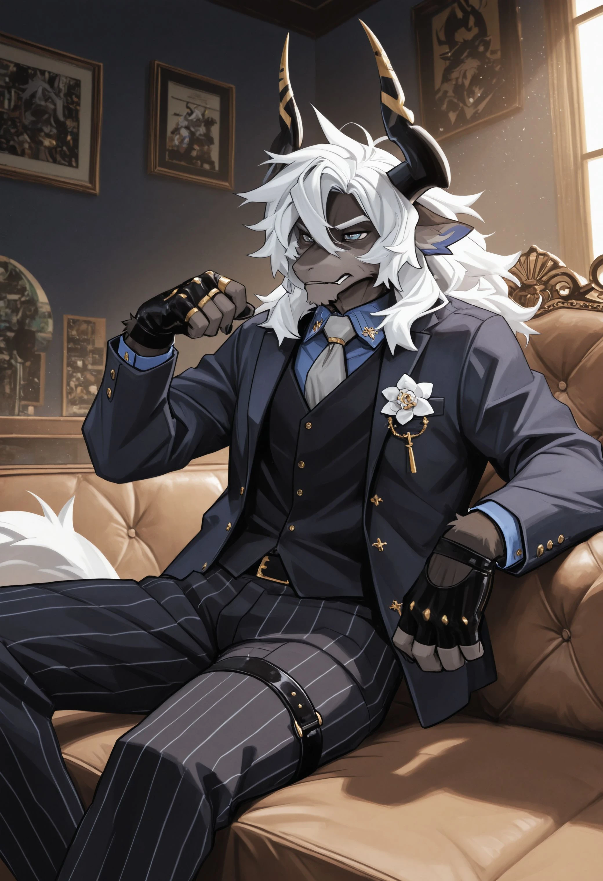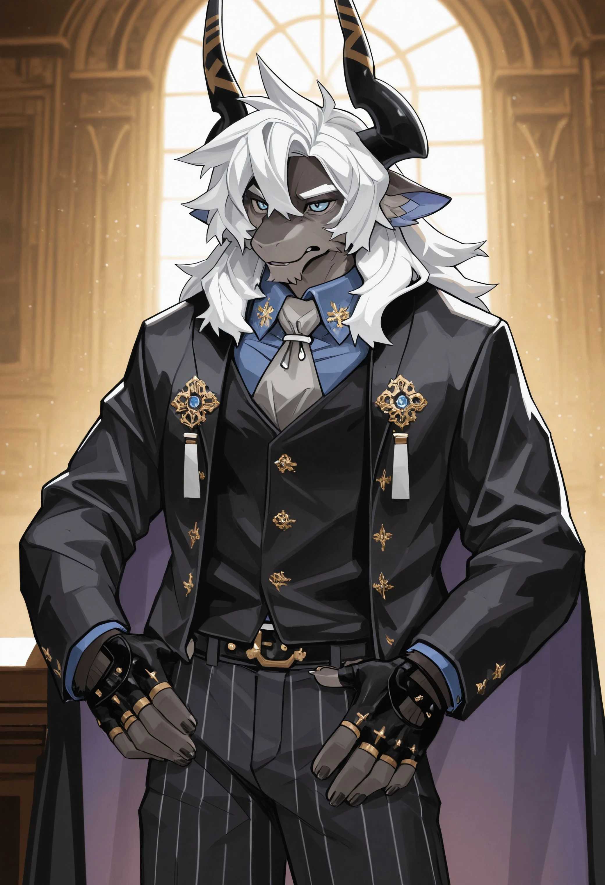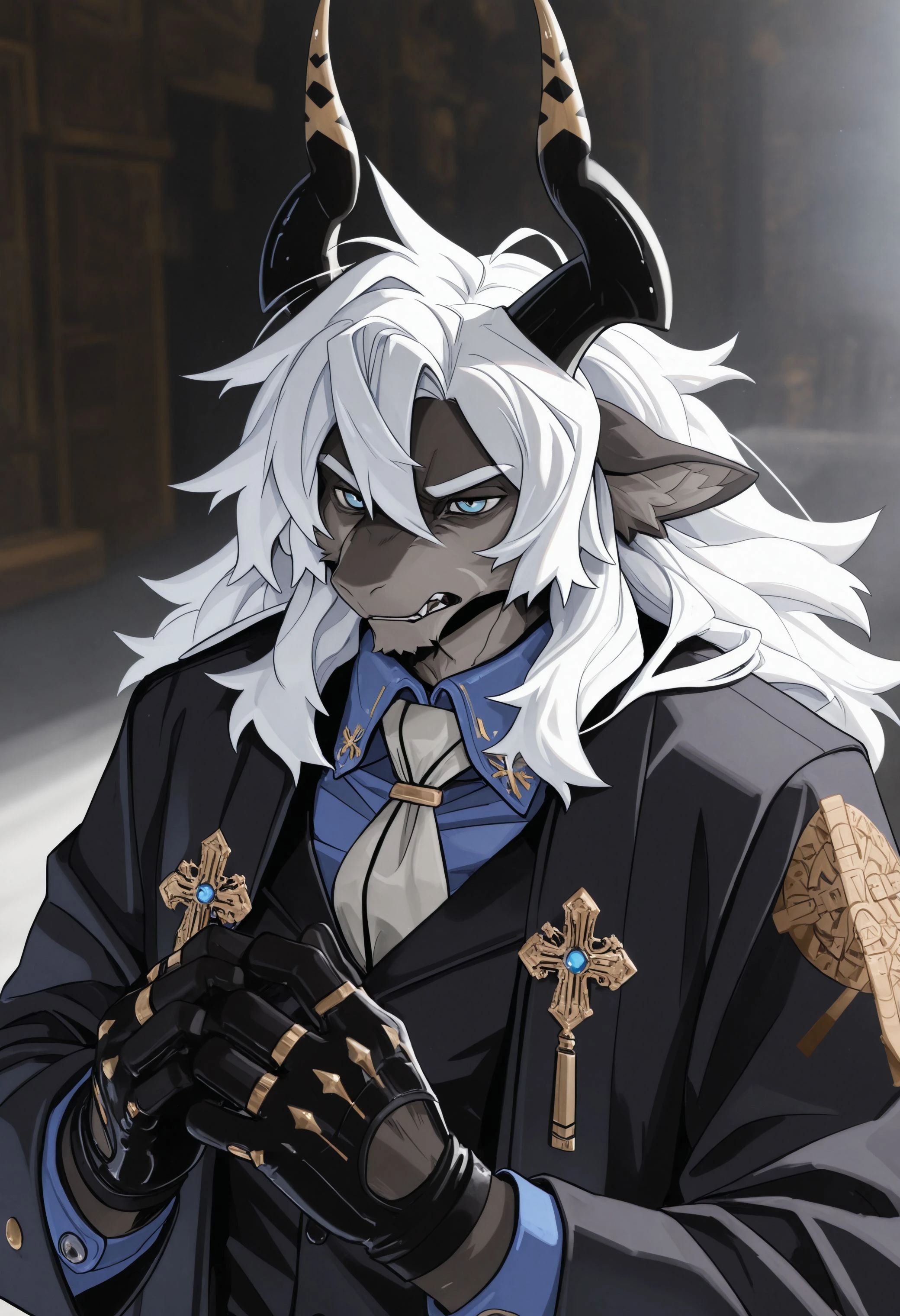 i5tv4n_4lch3my_st4r5, furry, furry male, 1boy, animal ears, white hair, horns, gloves
