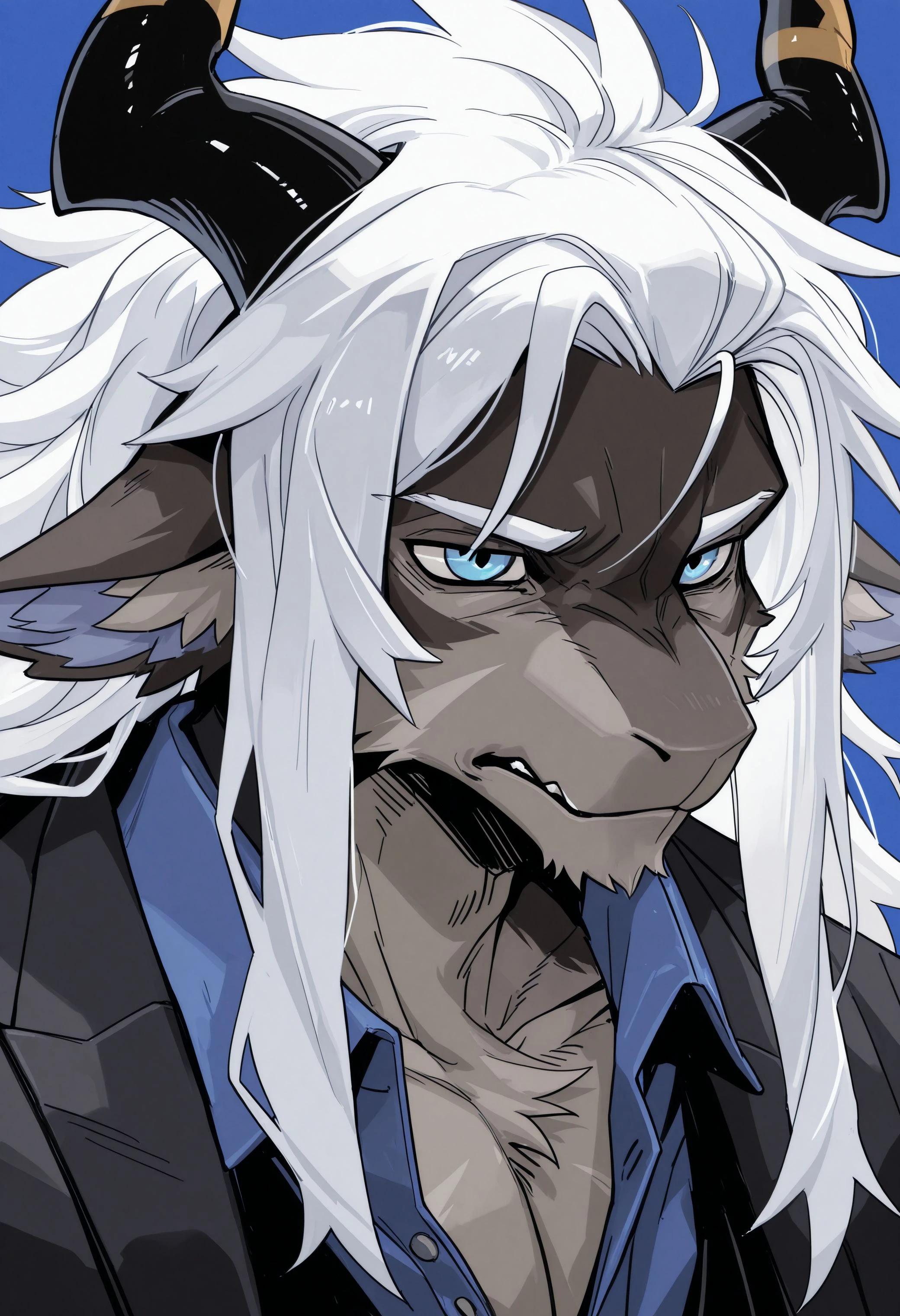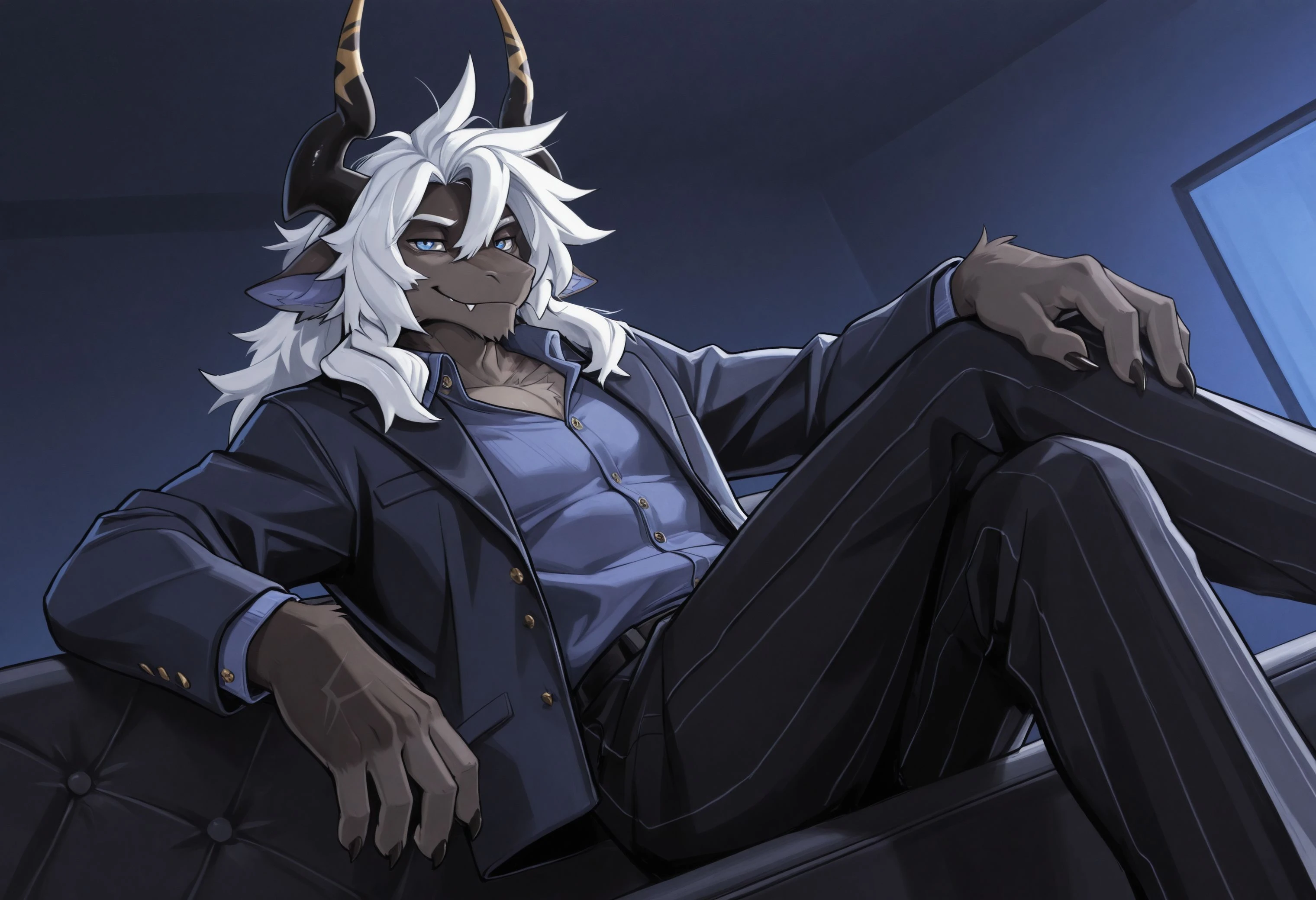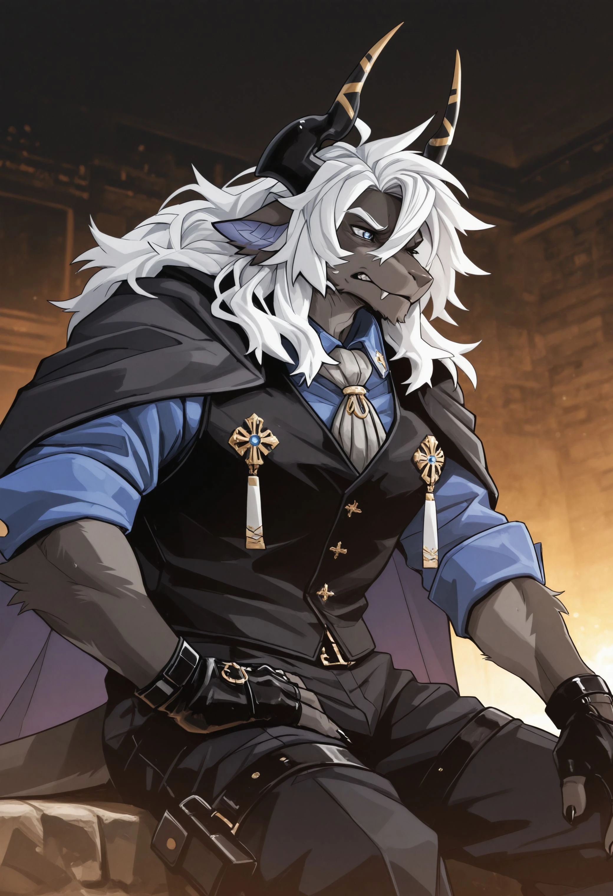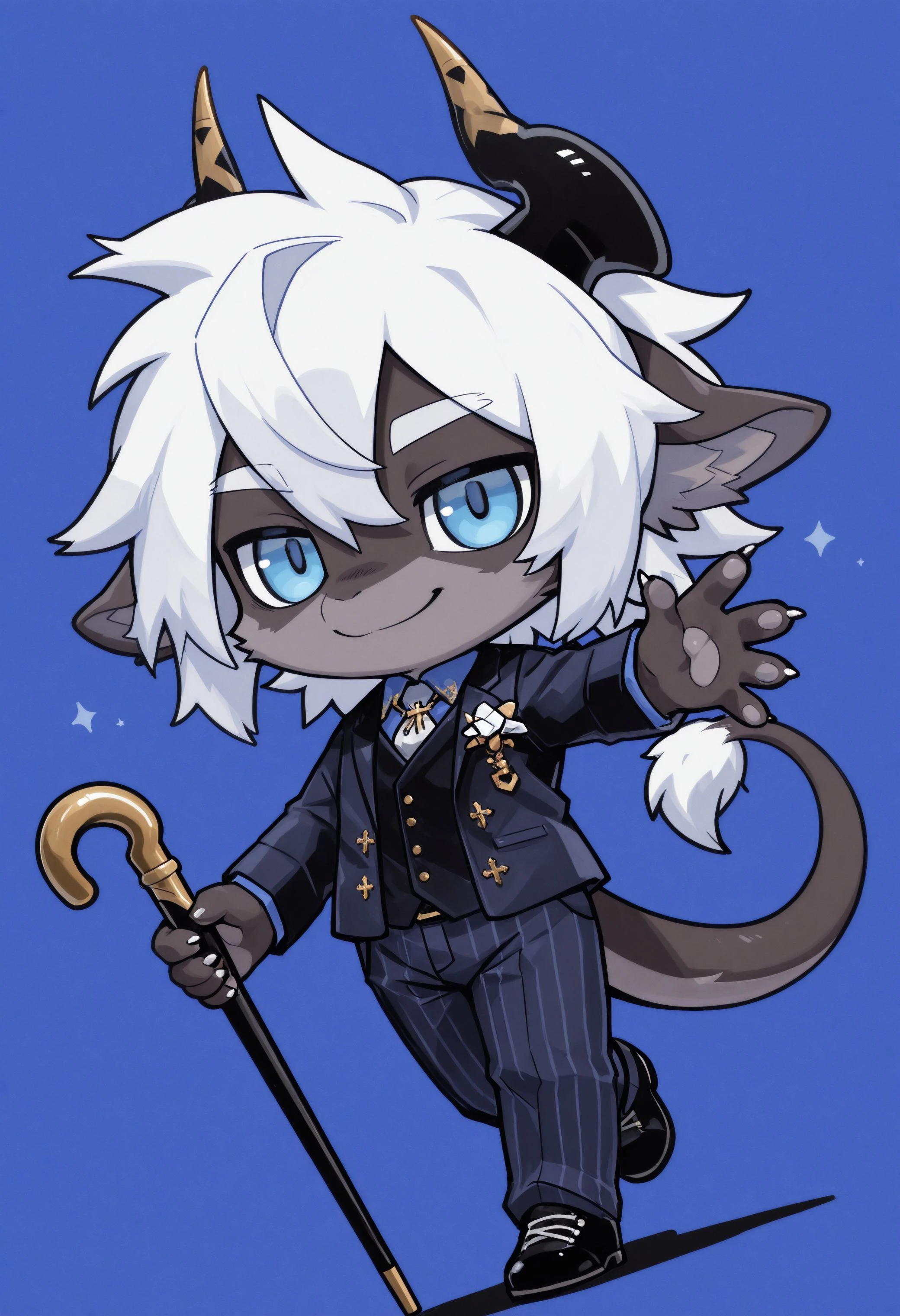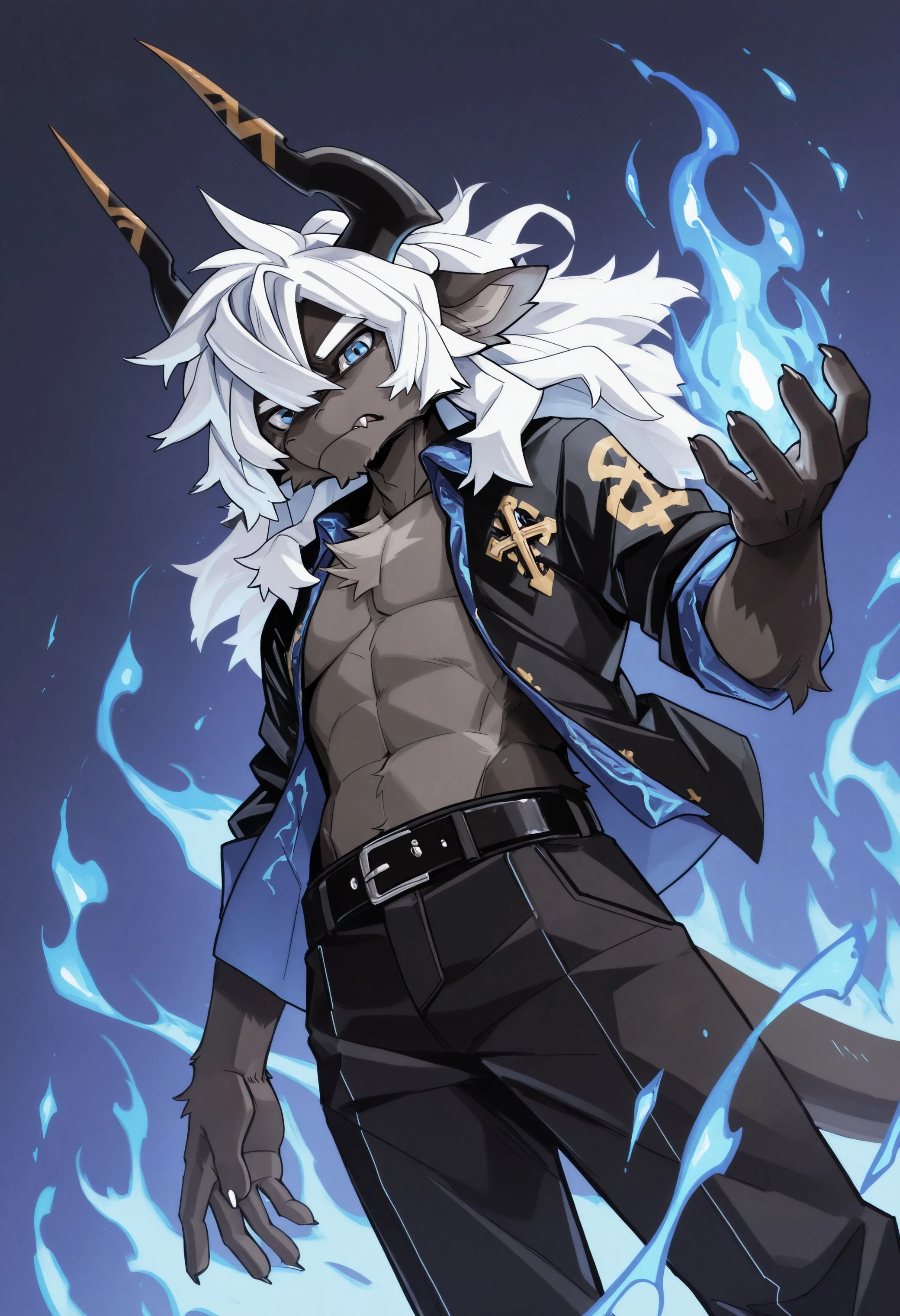 Illustrious: best quality, amazing quality, very aesthetic, absurdres, hires, i5tv4n_4lch3my_st4r5, furry, furry male, 1boy, animal ears, blue eyes, fang, white hair, horns, claws, gloves, ...your tags...Illustrious: bad quality, worst quality, bad anatomy, wrong anatomy, wrong limbs, broken anatomy, malformed limbs, artifacts, text, signature, watermark, patreon logoDescription