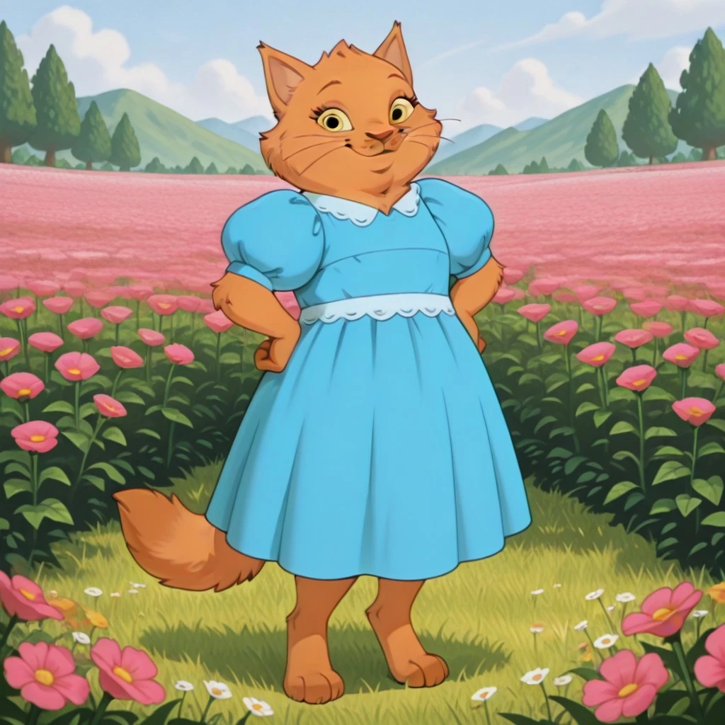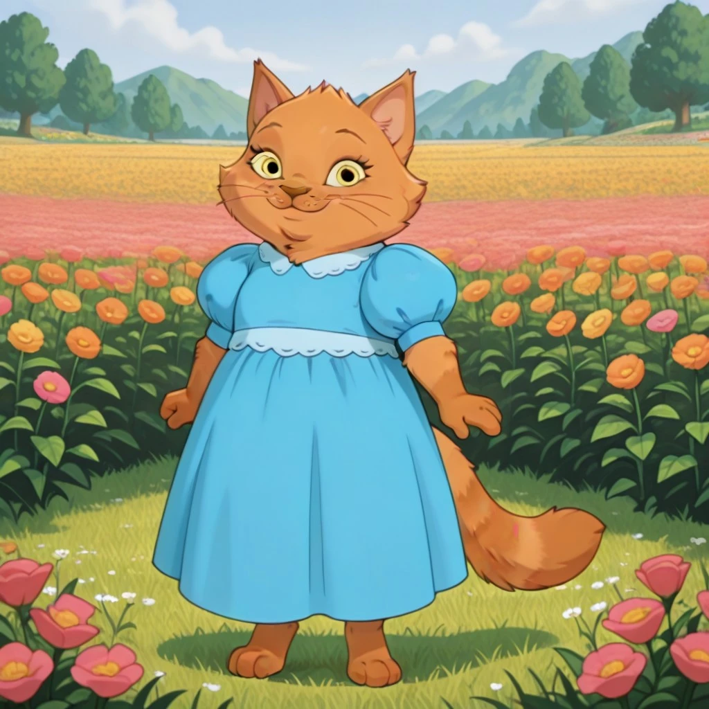 cat, cat girl, orange fur, yellow eyes, brown nose, whiskers, cat ears, Fluffy cat tail, digitigrade,