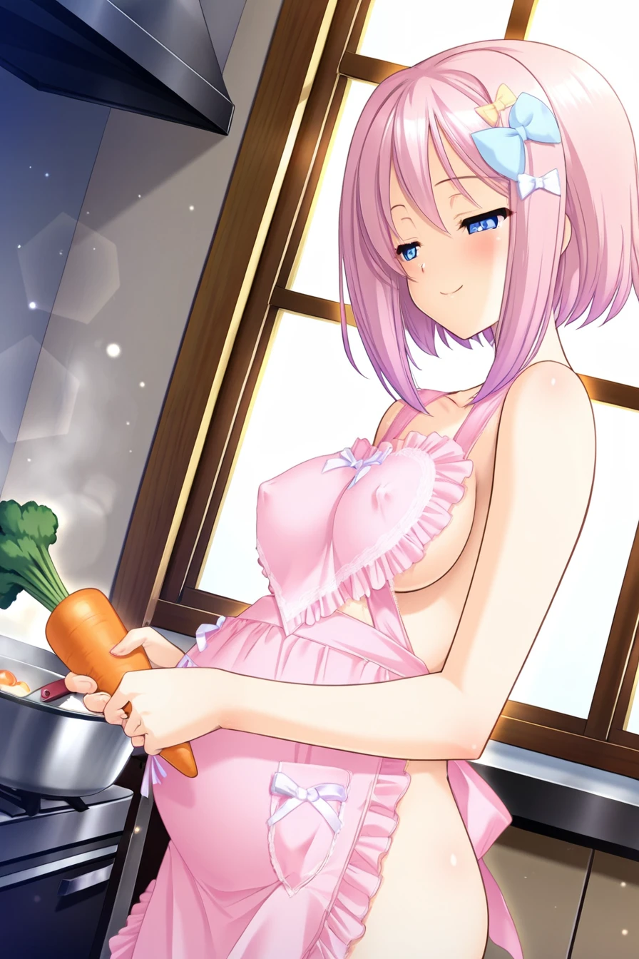 Pregnant : bow,covered nipples,naked apron,pink apron,heart shaped arpon,pregnant, (bare foot)