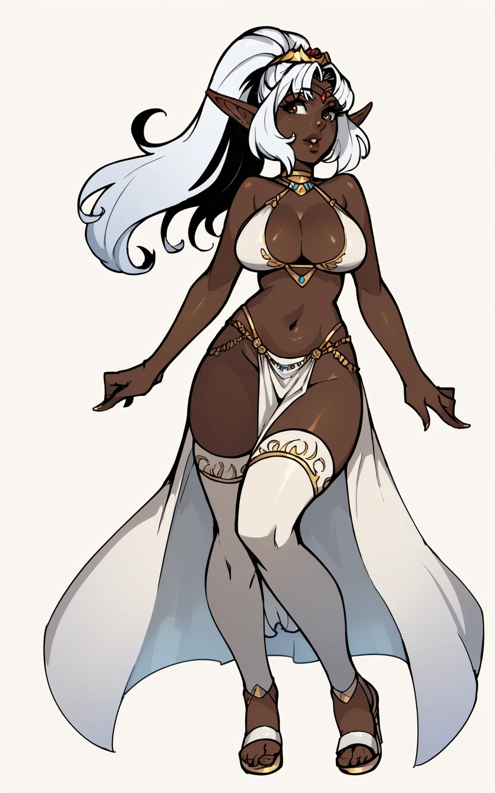 Reinforcement Tags: long hair, brown eyes, ponytail, white hair, pointy ears, dark skin, dark-skinned female, elf