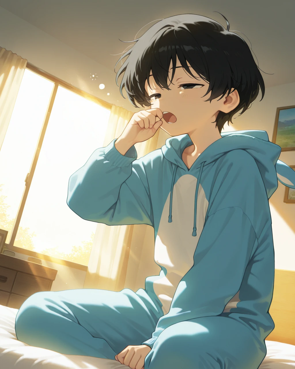 Clothes: blue polo shirt, grey shorts, white socks, white shoes,