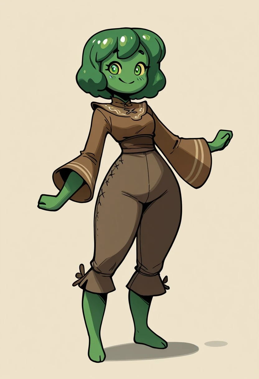 tavernoutfit, brown blouse, wide sleeves, cropped brown pants, barefoot