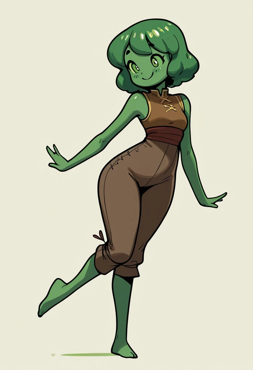 classicoutfit, sleeveless brown crop top, brown pants, barefoot