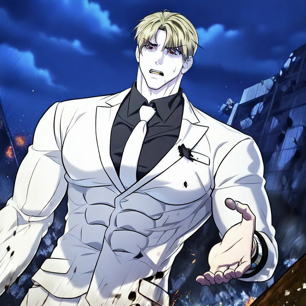 Ryu, blonde hair, red eyes
