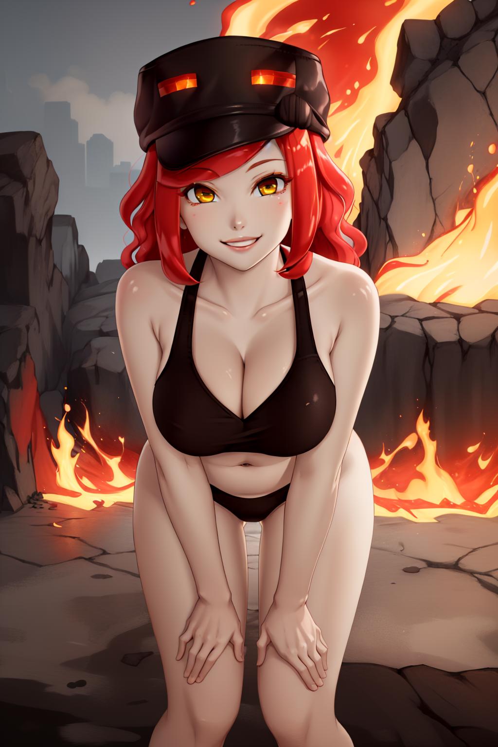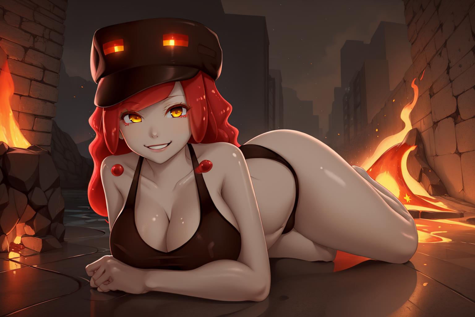 Trigger + Appearance: mcmagma, slime girl, colored skin, yellow eyes