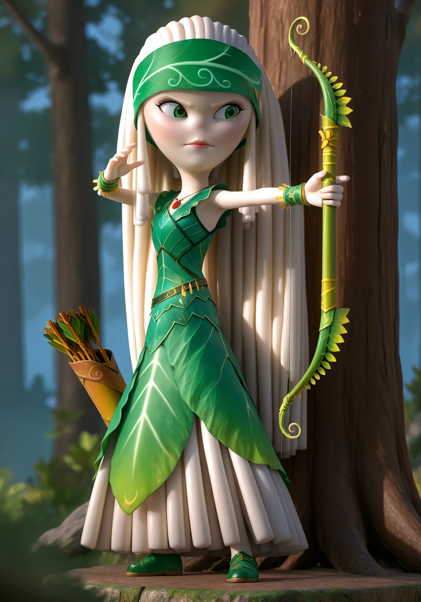 Yi Qiaoqiao (Choy) is a virtual character from the Chinese 3D animated series KungFood. Her race is the “Boiled Tribe Noodles,” inspired by traditional Chinese noodle dishes. As the backbone of the team, Yi Qiaoqiao has a strong, decisive personality—tough on the outside but soft on the inside—and often looks after the crew in an older-sister role. She is skilled in steering, martial arts, and water-based abilities. Her body is highly flexible, allowing her to use wheat-core powers such as “Noodle Tornado” and “Ten Thousand Arrows at Once,” but she fears fire and can dry out easily in hot or arid conditions. The character’s design blends martial arts elements with food-based traits, and her personality is further expressed through flute playing. Although her decision-making can sometimes be domineering, she ultimately holds the Steamer Box crew together as a cohesive team.