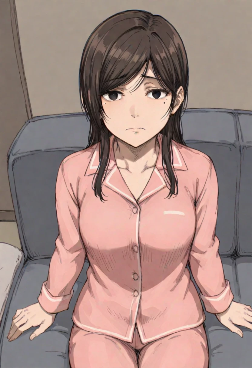 1girl,eiko,mole under eye,long hair,black eyes,brown hair,