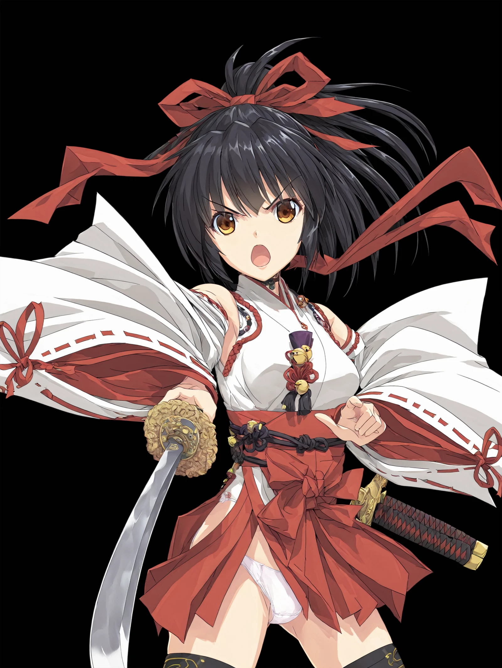 miko, hakama, detached sleeves, choker