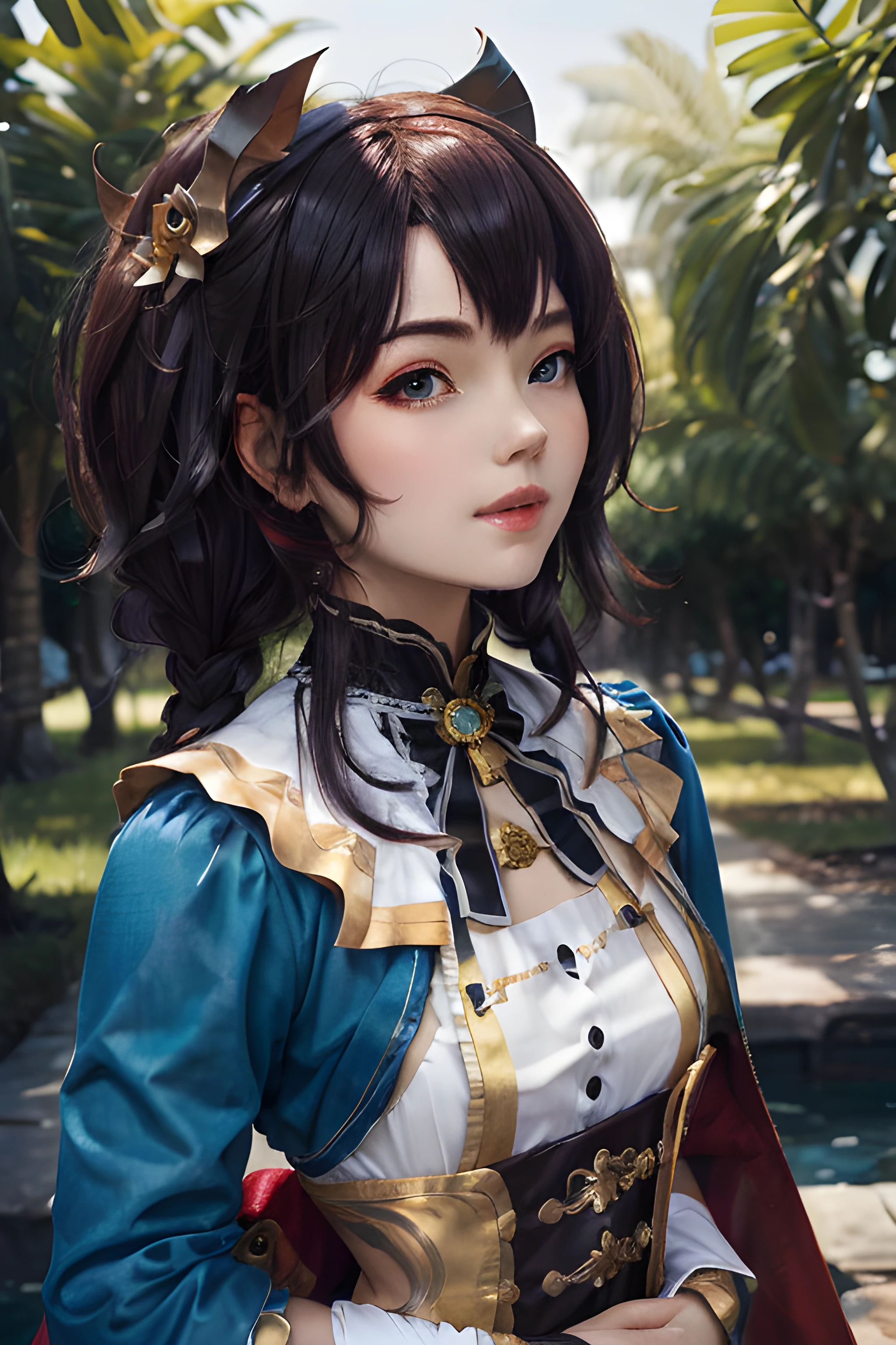 Trained over ~120 images from multiple cosplay and wigs, so it should be flexible to change her hair and hairstyle.