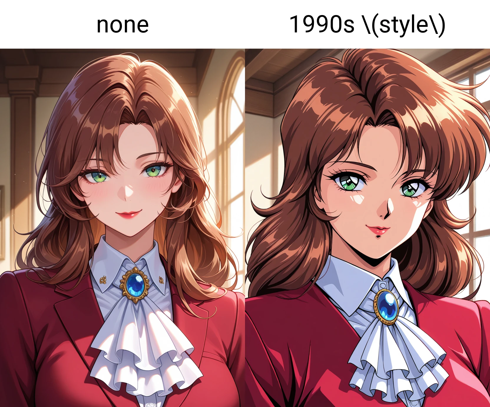 プロンプトに "1990s (style)" を使った方が、ゲームの雰囲気に近くなります。