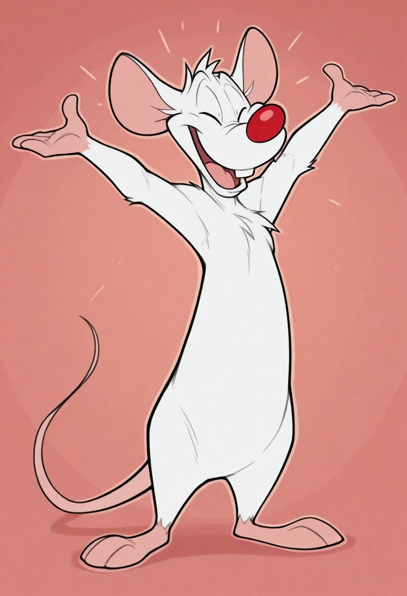Pinky the Mouse, white fur, red nose, buck teeth,