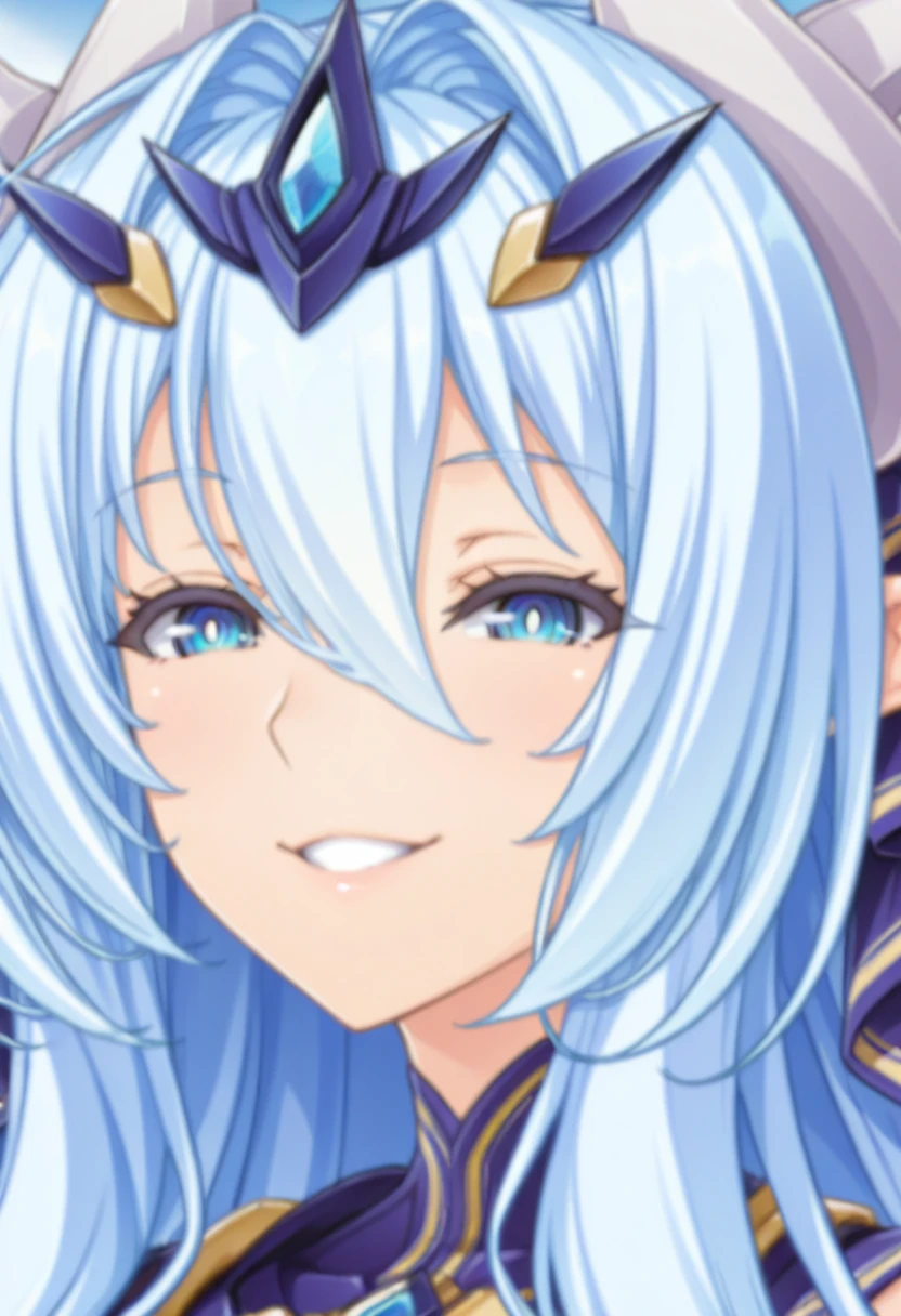 trance_Exsmarina,blue hair, light blue hair, absurdly long hair, white horns, pointy ears,blue eyes,