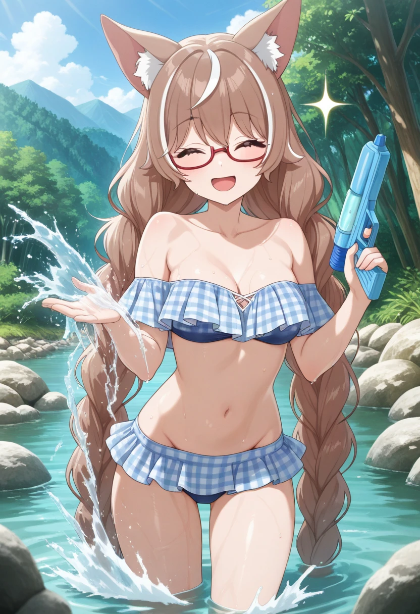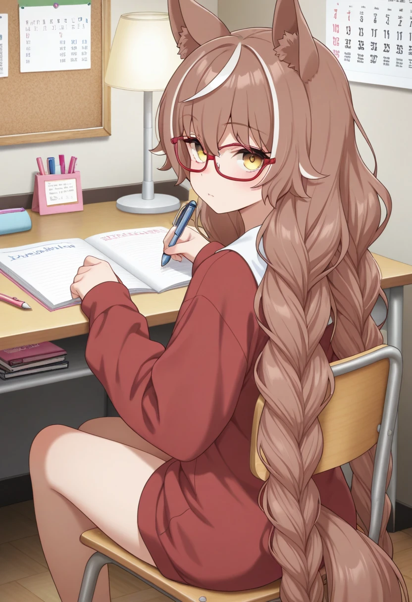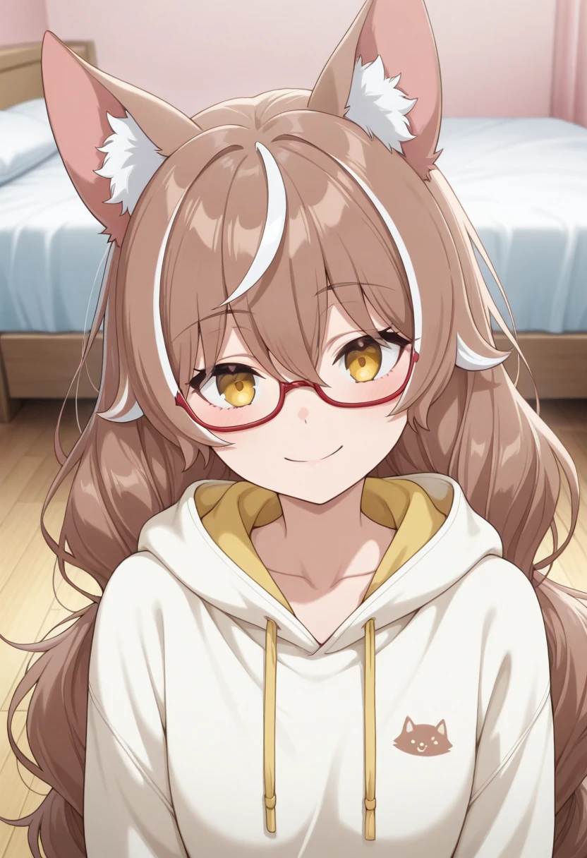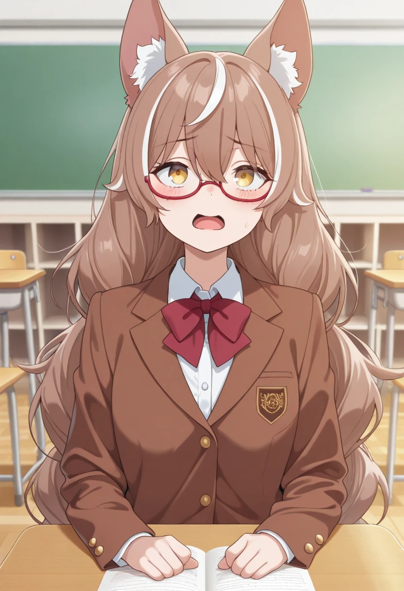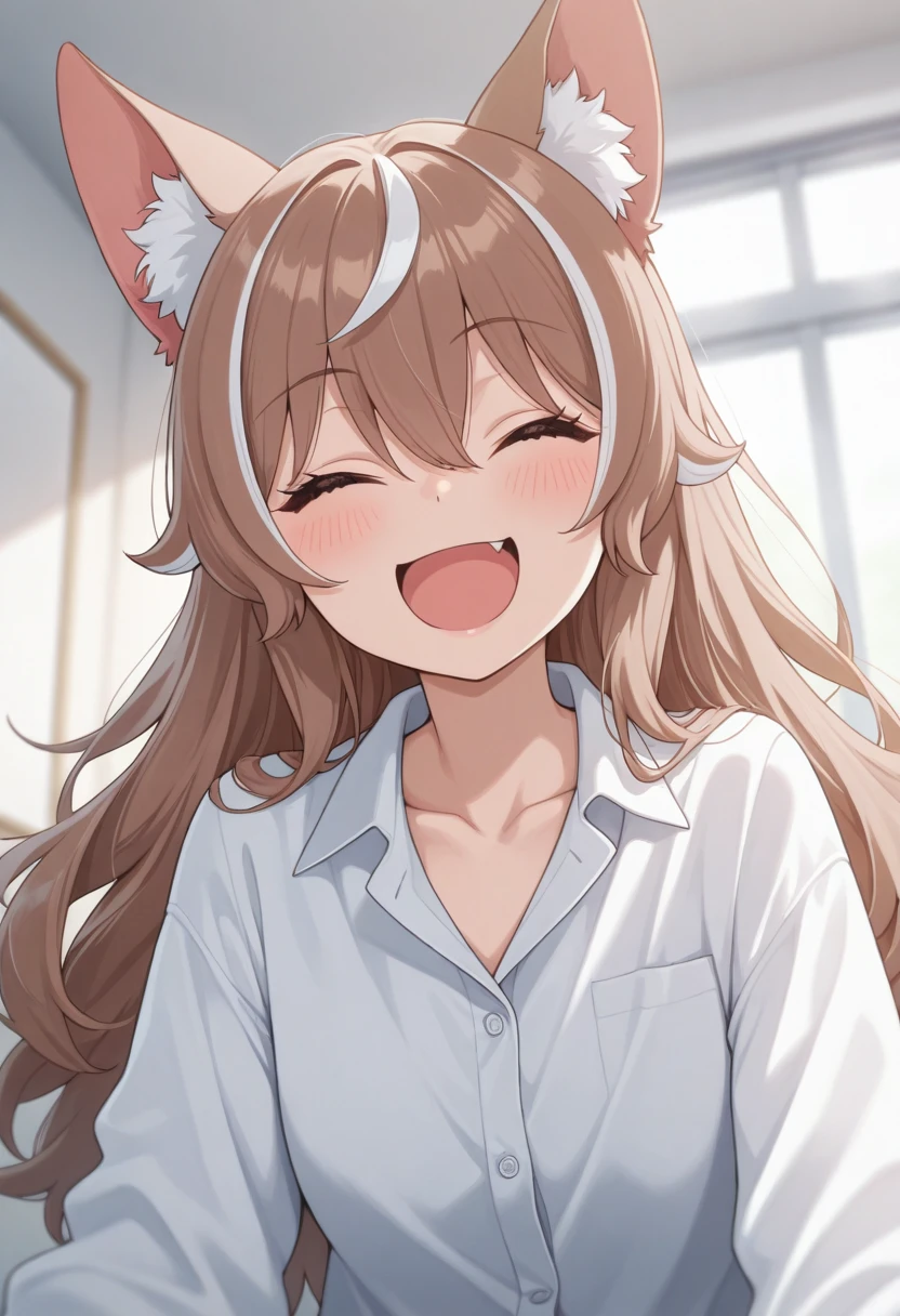 Trigger Words: ohgami isaki, long hair, brown hair, yellow eyes, wolf ears, wolf girl, animal ears, animal ear fluff