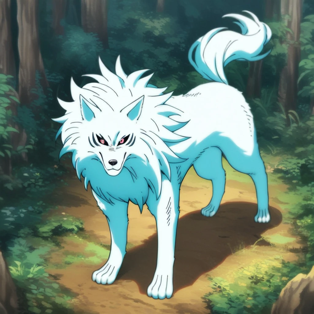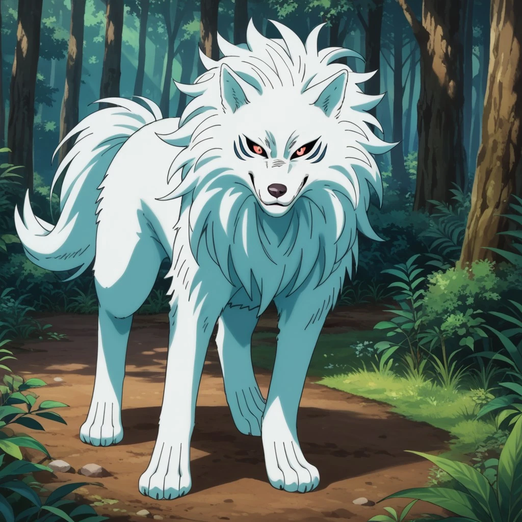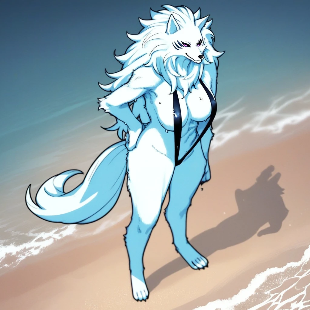 canine, wolf, white fur, pink eyes, black sclera, black nose, wolf ears, facial markings, wolf tail,