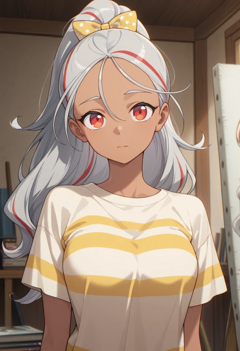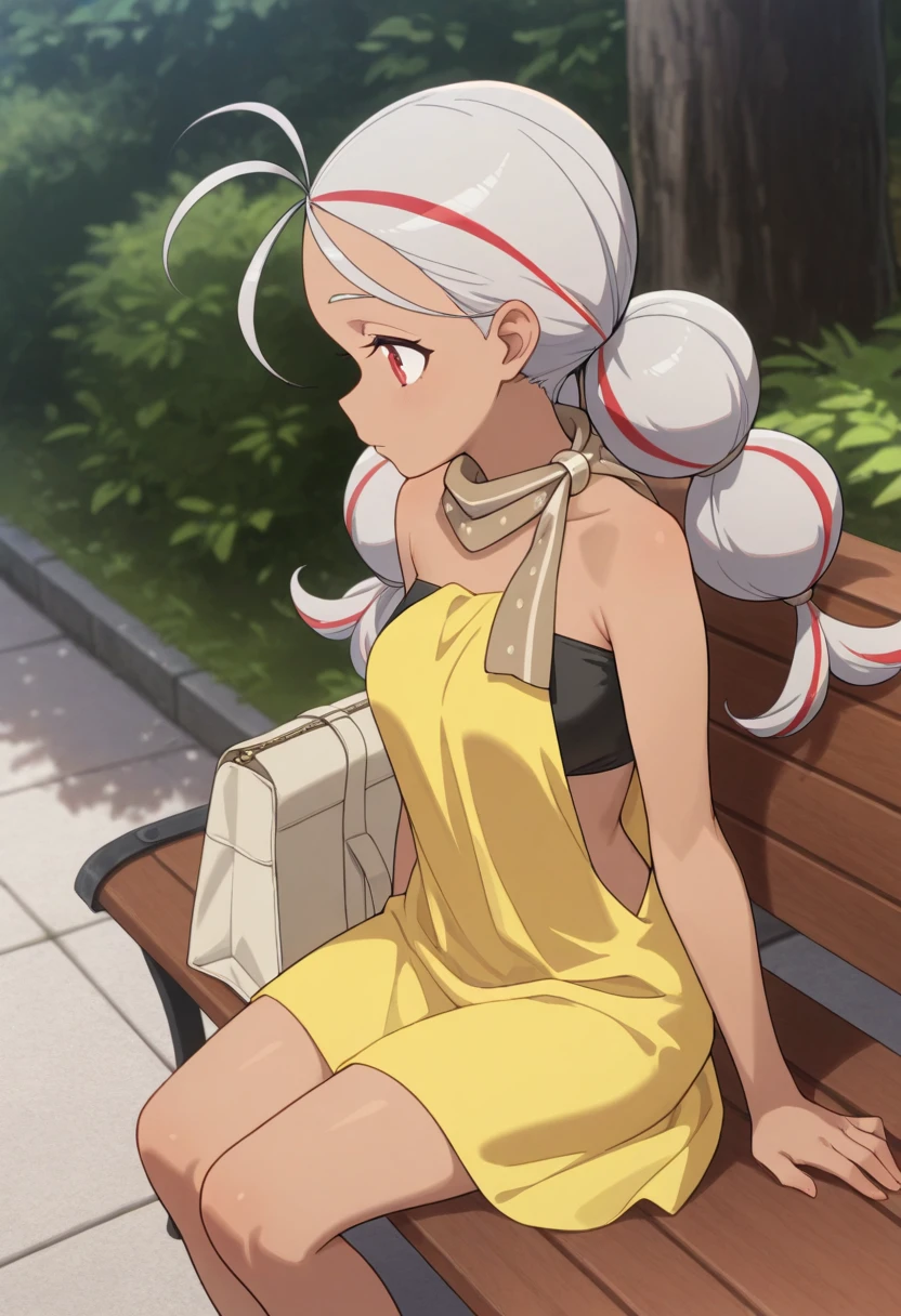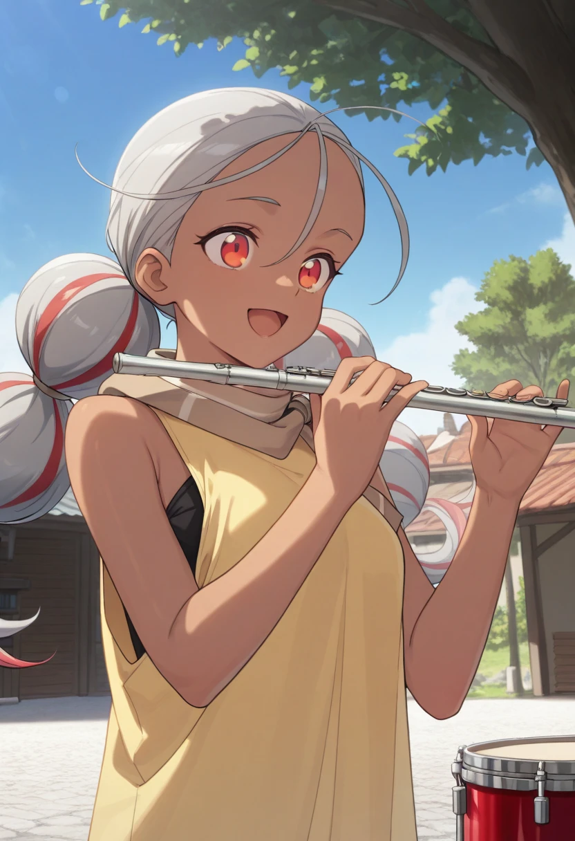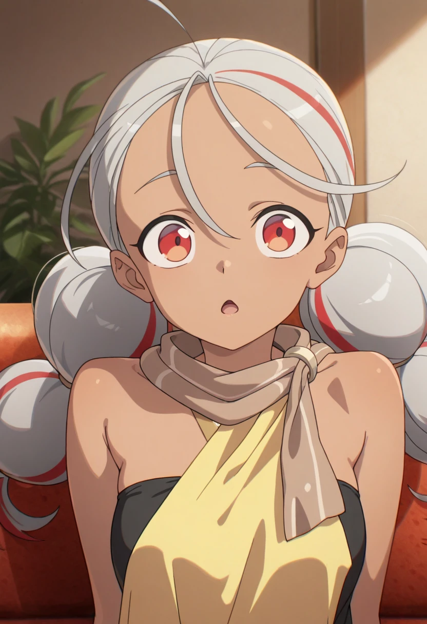 Trigger Words: amoru (towa no yuugure), dark skin, dark-skinned female, two-tone hair, twin braids, multicolored hair, red eyes, grey hair, red hair, scarf, streaked hair,