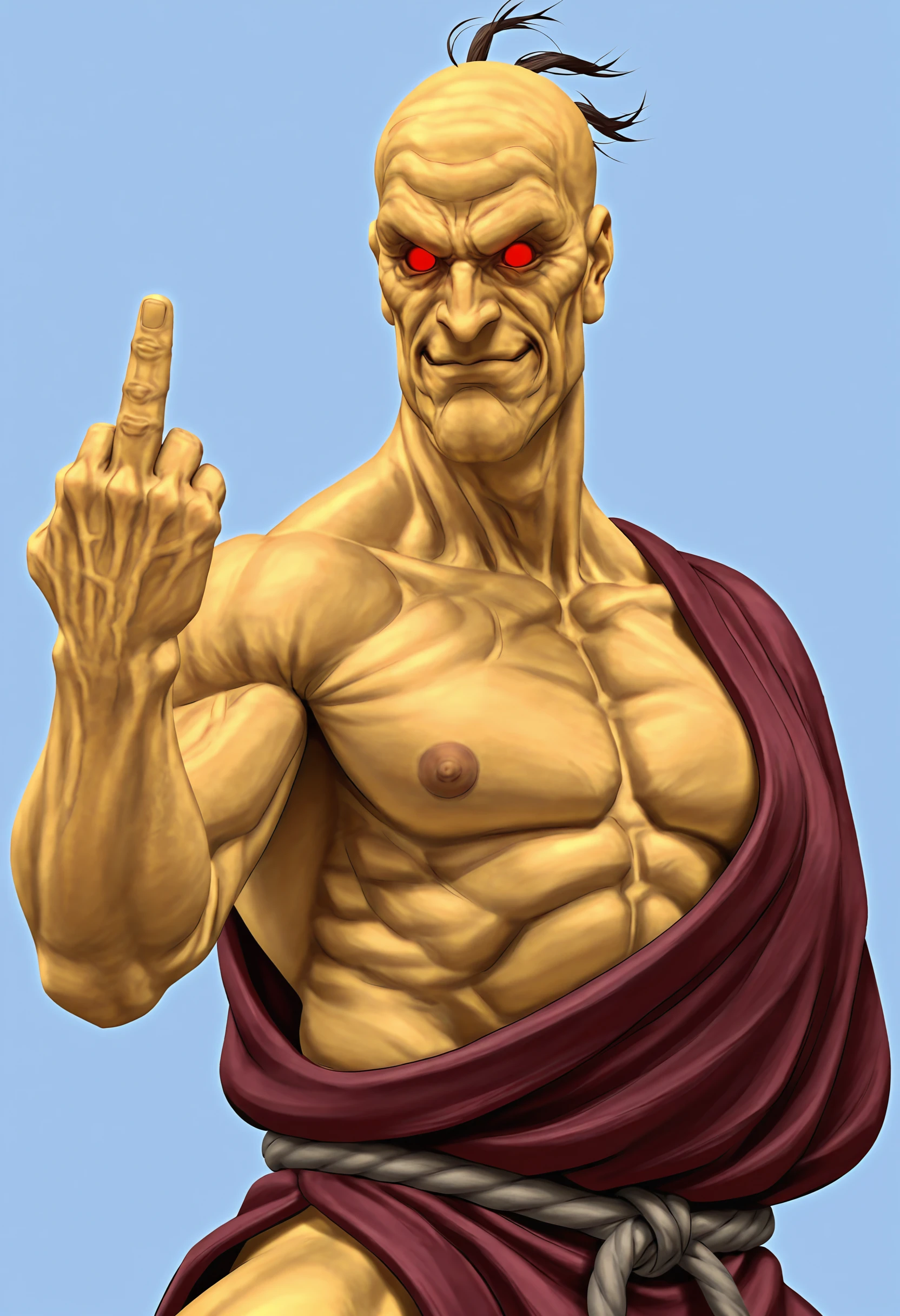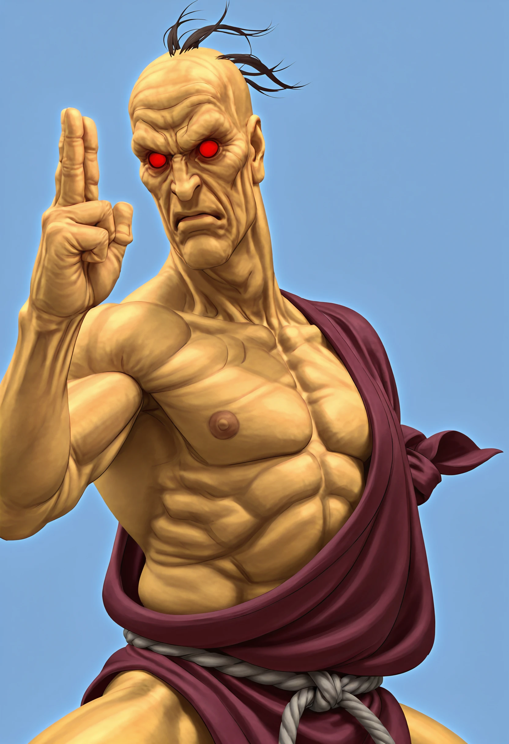 He is from the Street Fighter series, first appearing in Street Fighter III: New Generation. He is a Japanese hermit who is over 140 years old and has mastered the secrets of immortality.