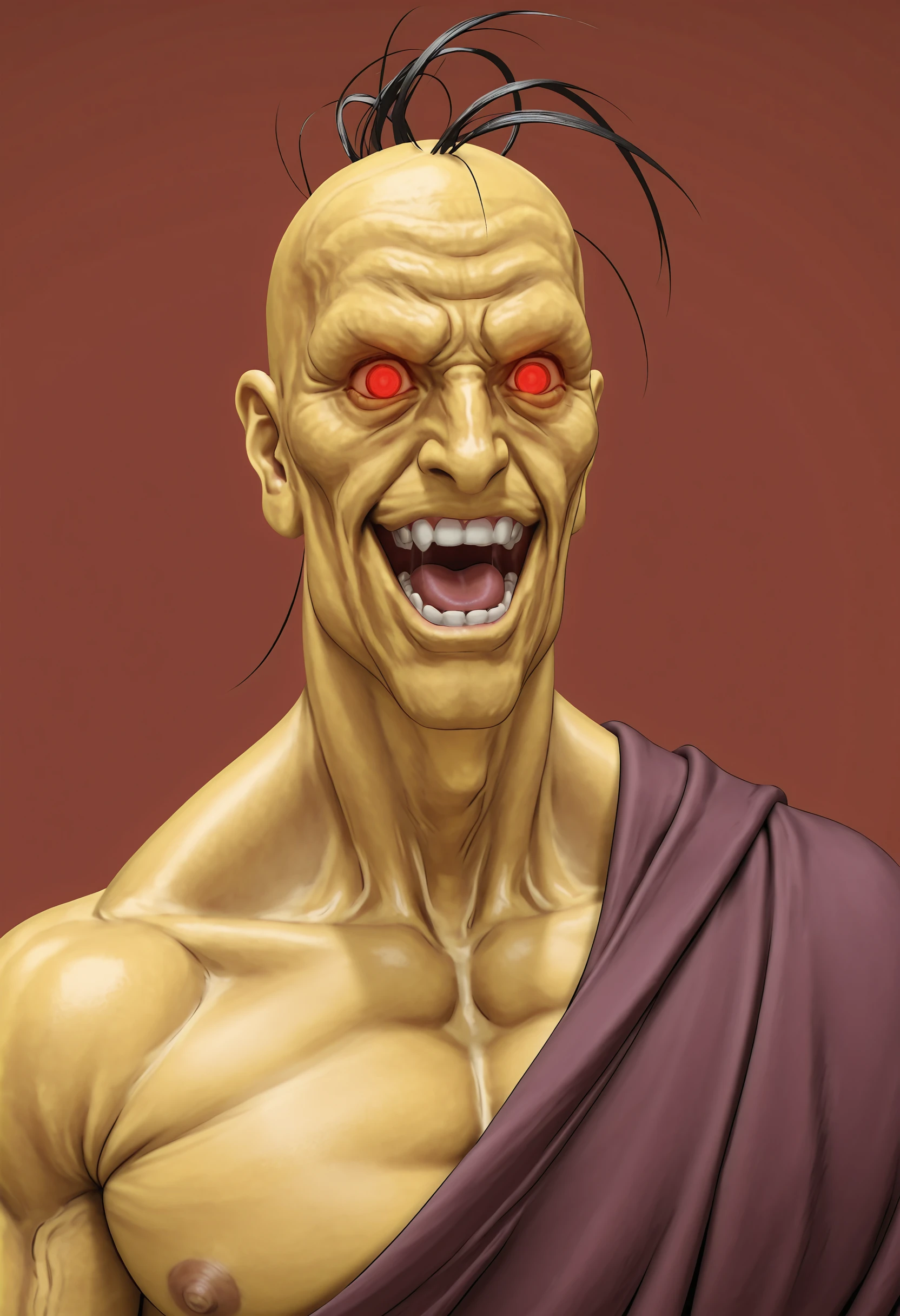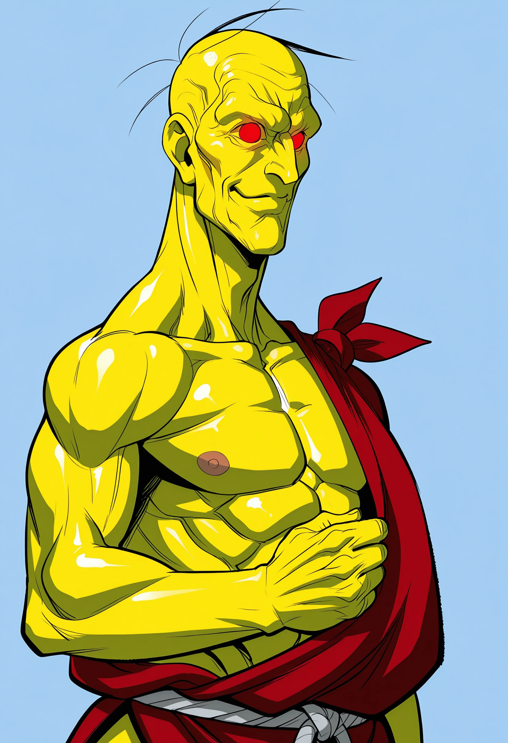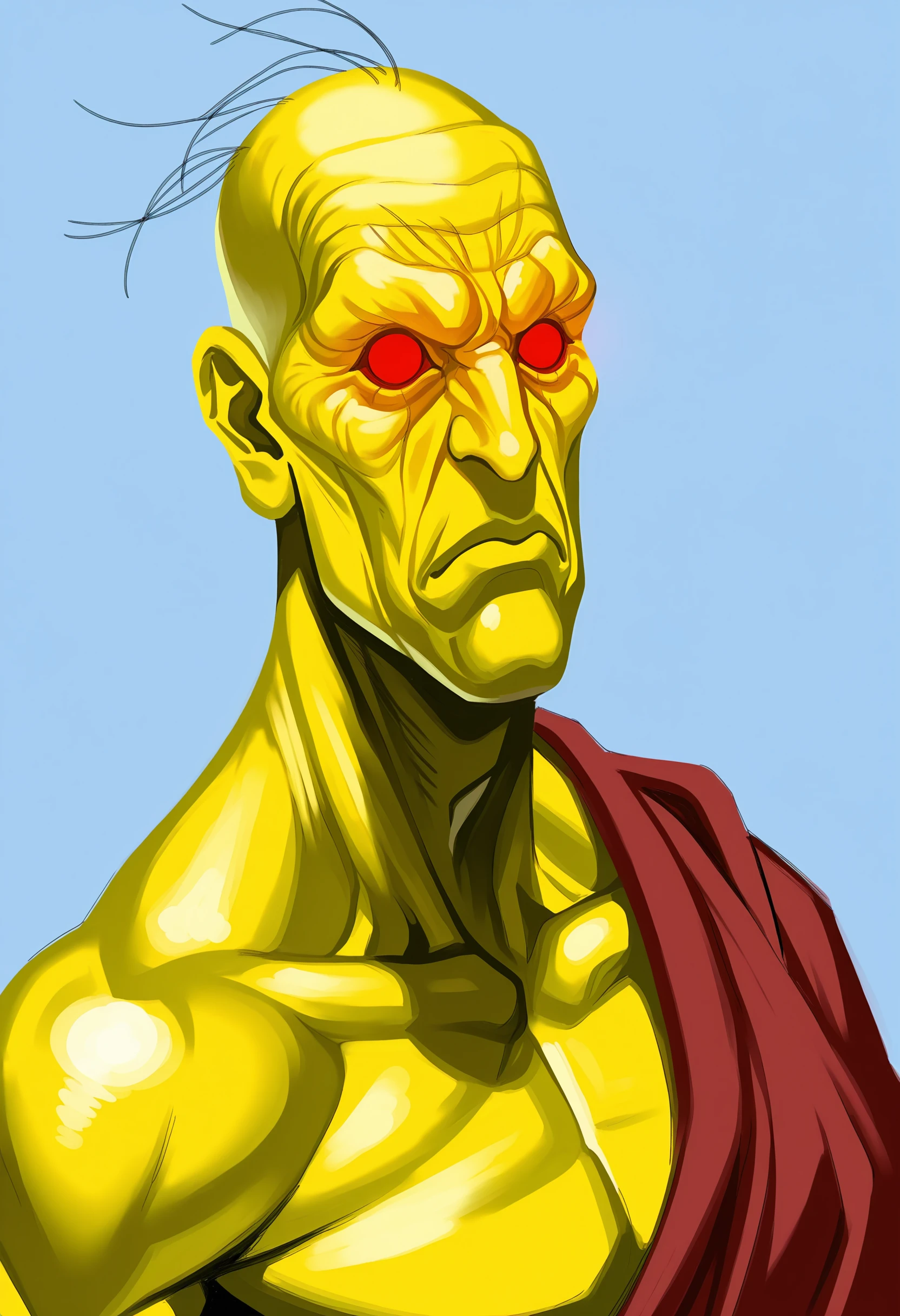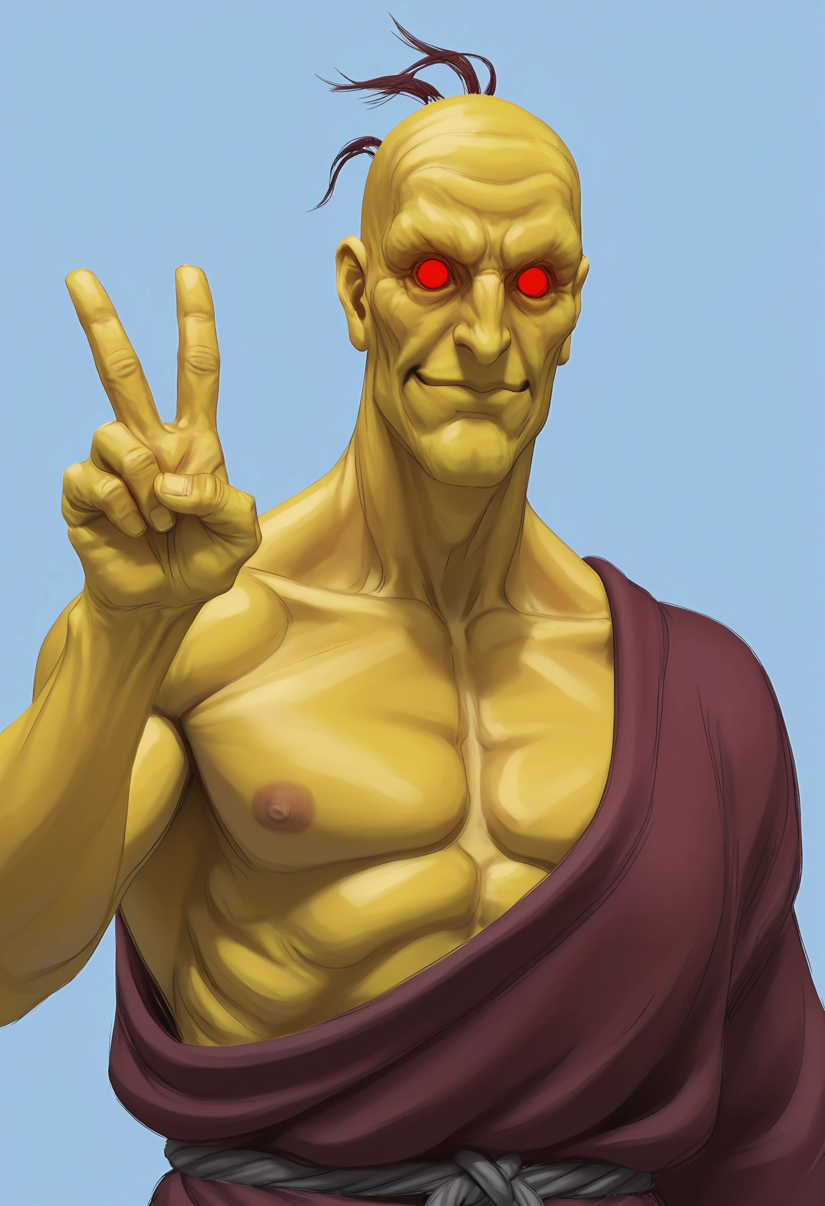 orsilf, colored skin, yellow skin, red eyes, glowing eyes, robe