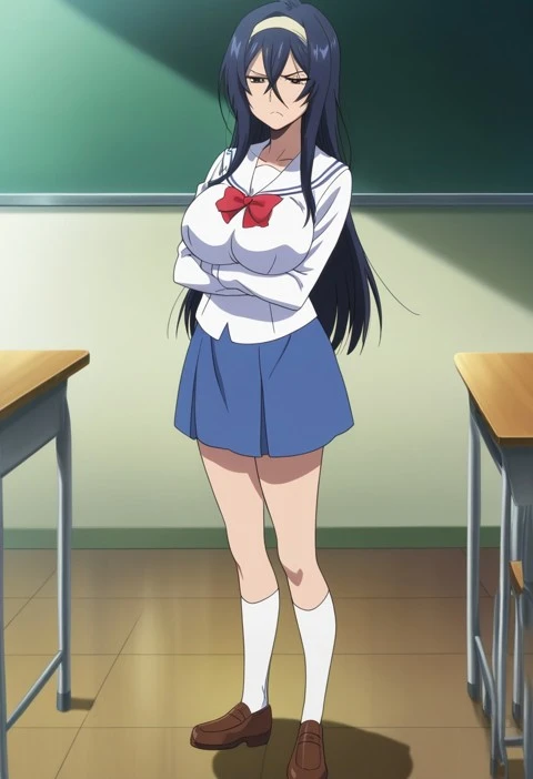 Sana Hayami,brown eyes,black hair,dark blue hair,long hair,hair between eyes,bangs,white hairband
