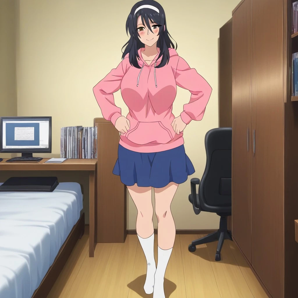 Pink hoodie,blue iris skirt,mini skirt