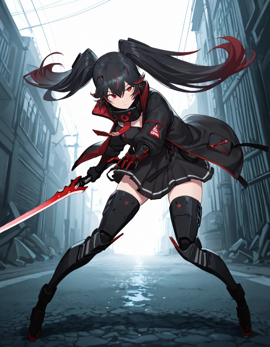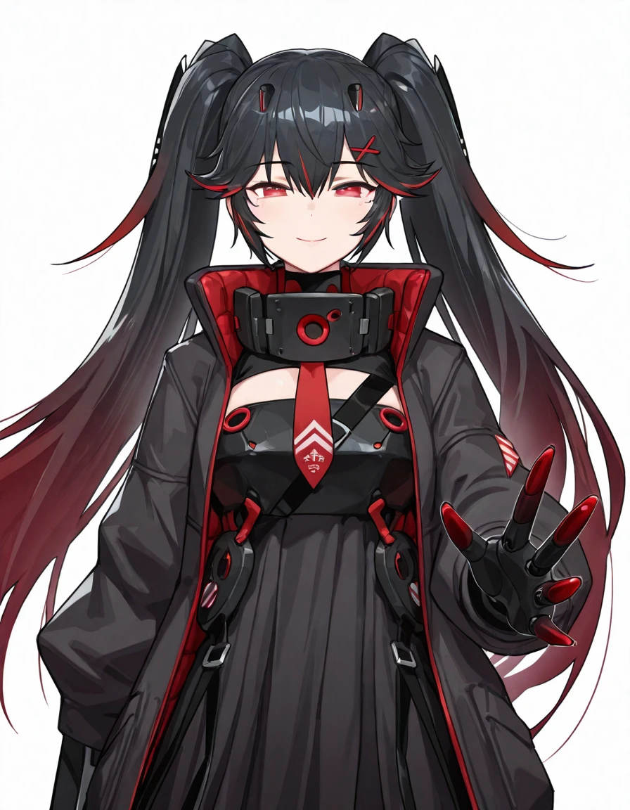 Luciadef, long hair, twintails, black hair, colored inner hair,red eyes,
