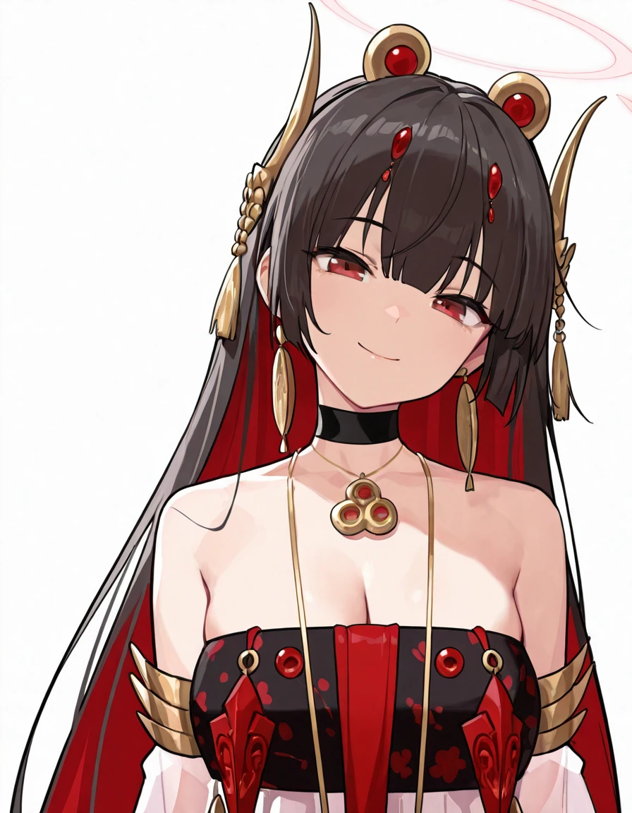 Luciasmr, long hair, one side up, black hair,red eyes,