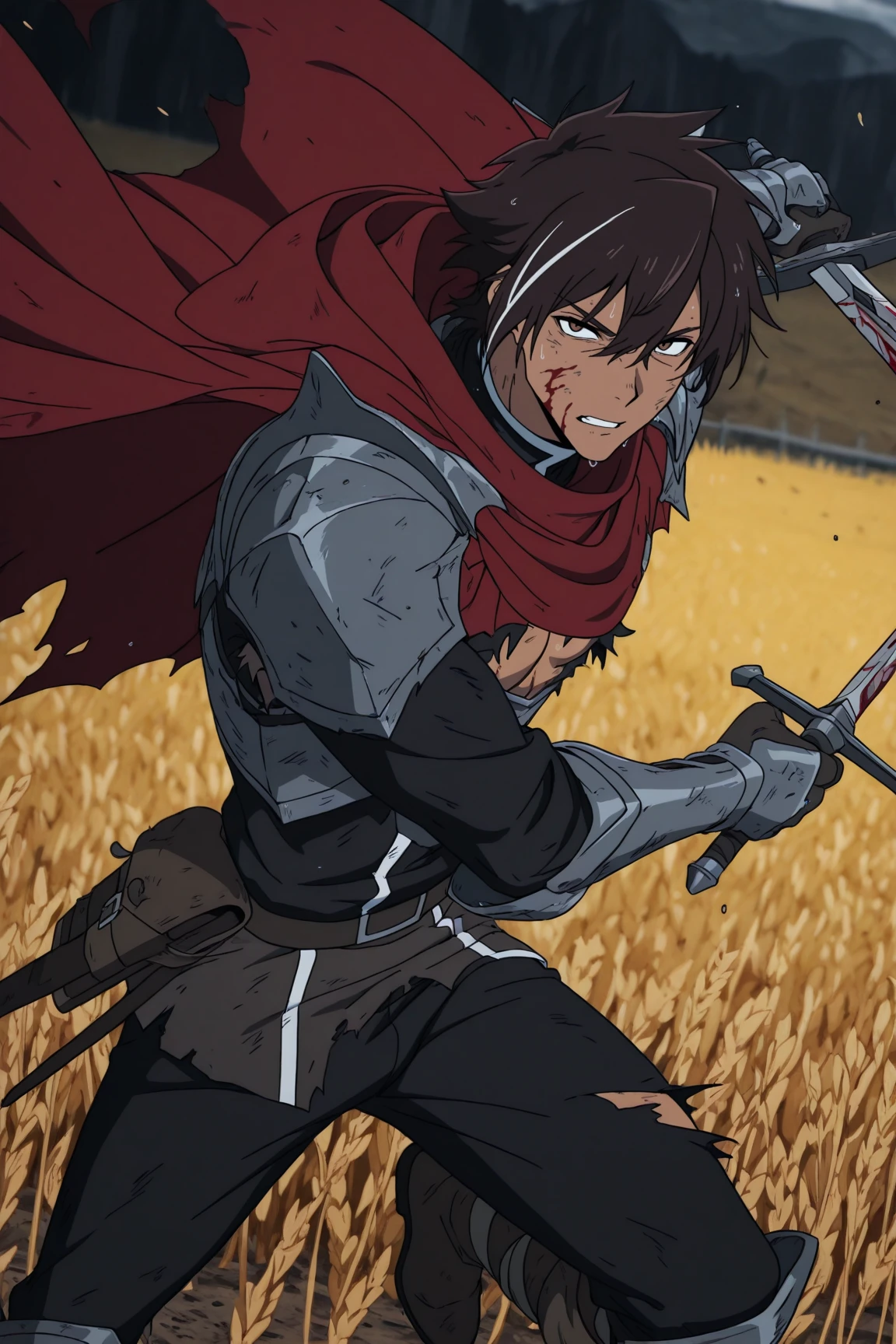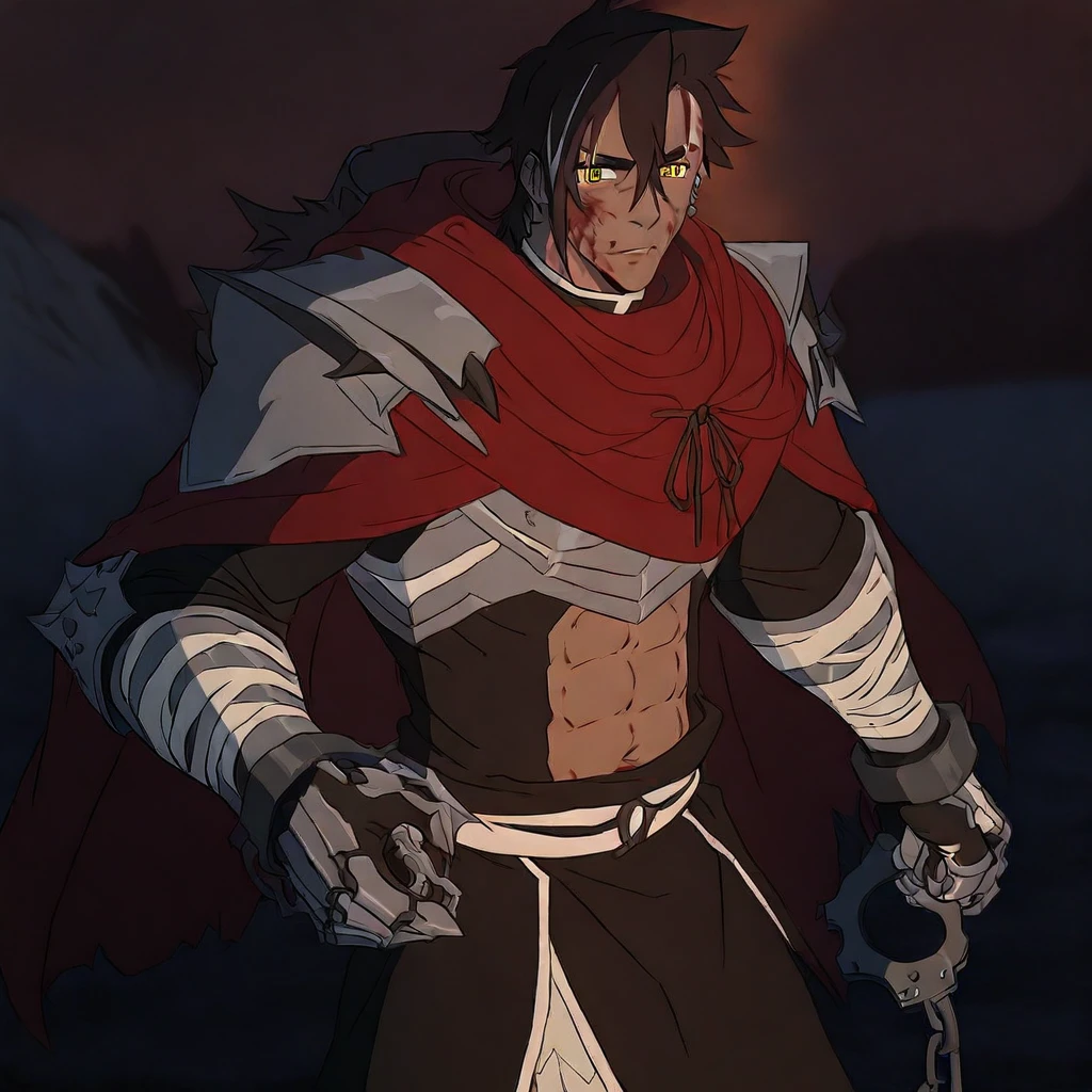 Xylo, brown hair, white streak, hair between eyes, brown eyes, multicolored hair, dark skin