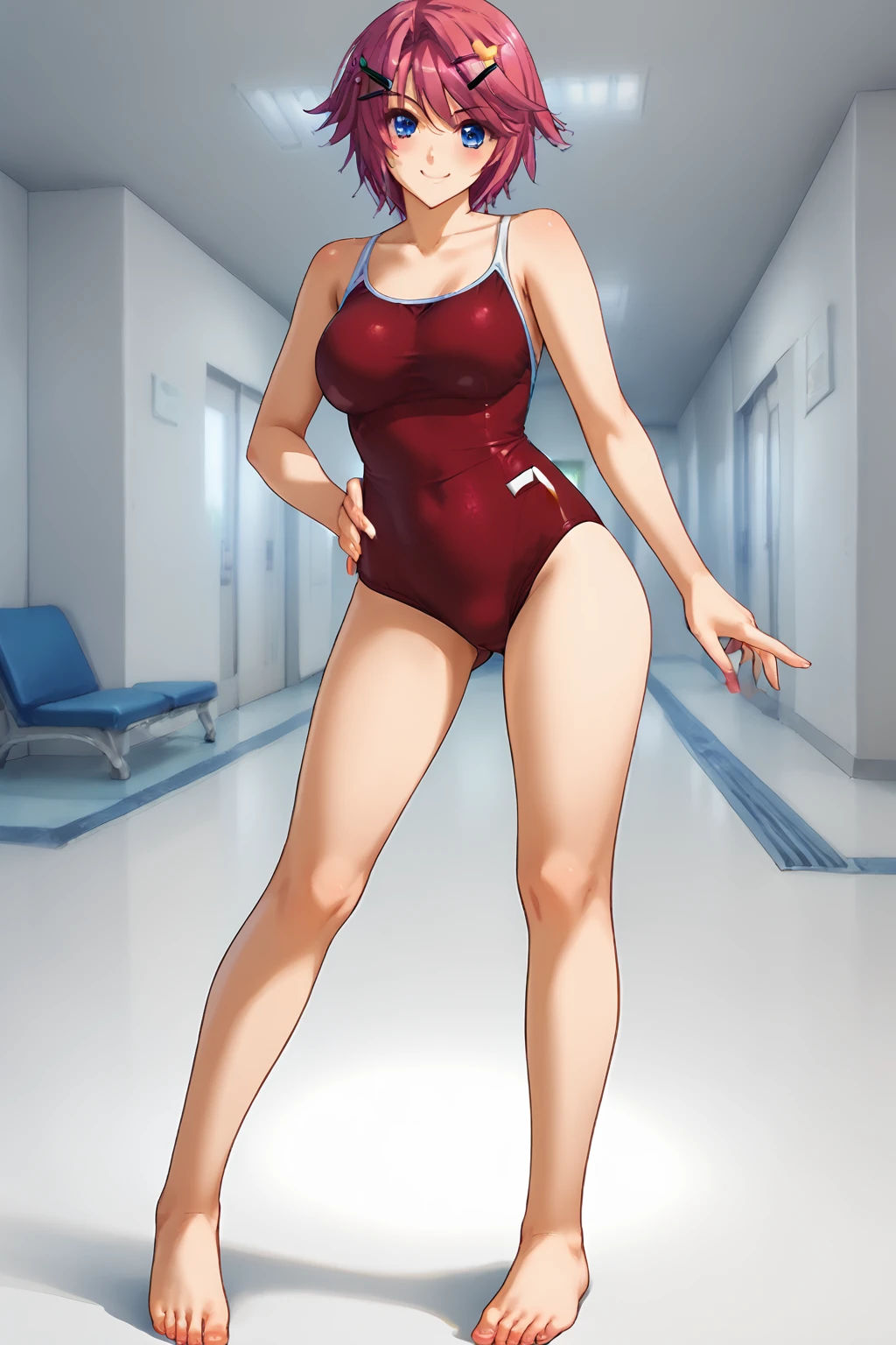 mahiru,1girl 1girl, solo, , hair ornament, short hair, blue eyes, bow,red hair, hairclip