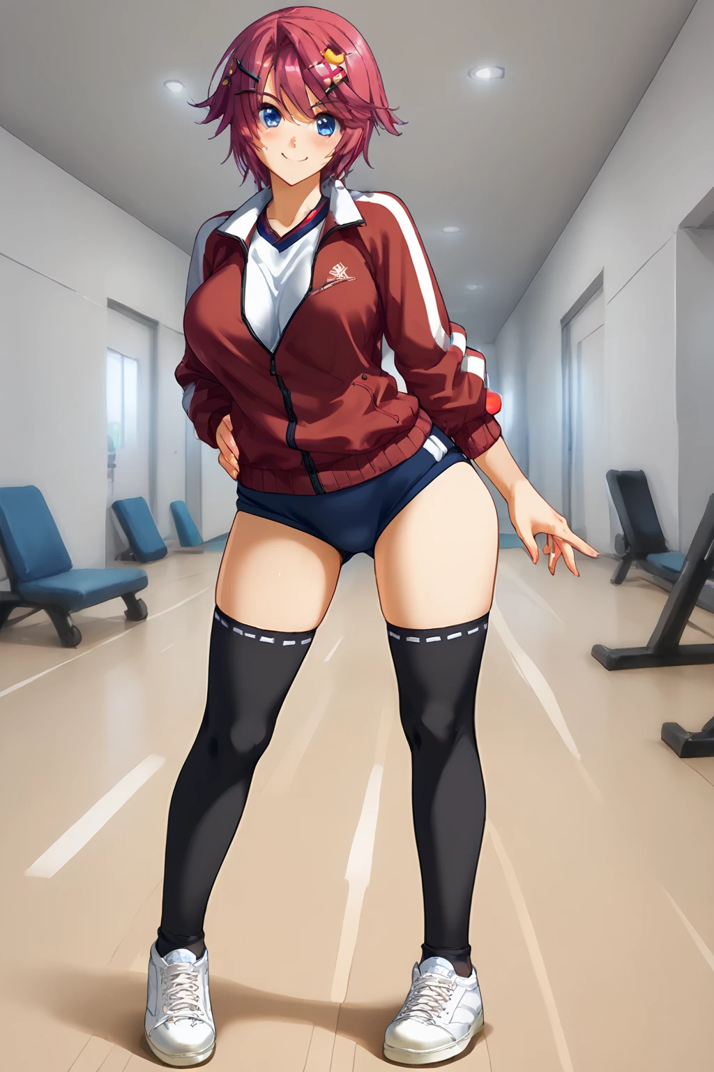 gym uniform, track jacket, buruma, blue buruma,sneakers,thighhighs