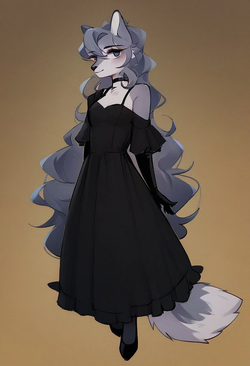 Dress, black dress, off shoulder, formal, thighhighs, gloves